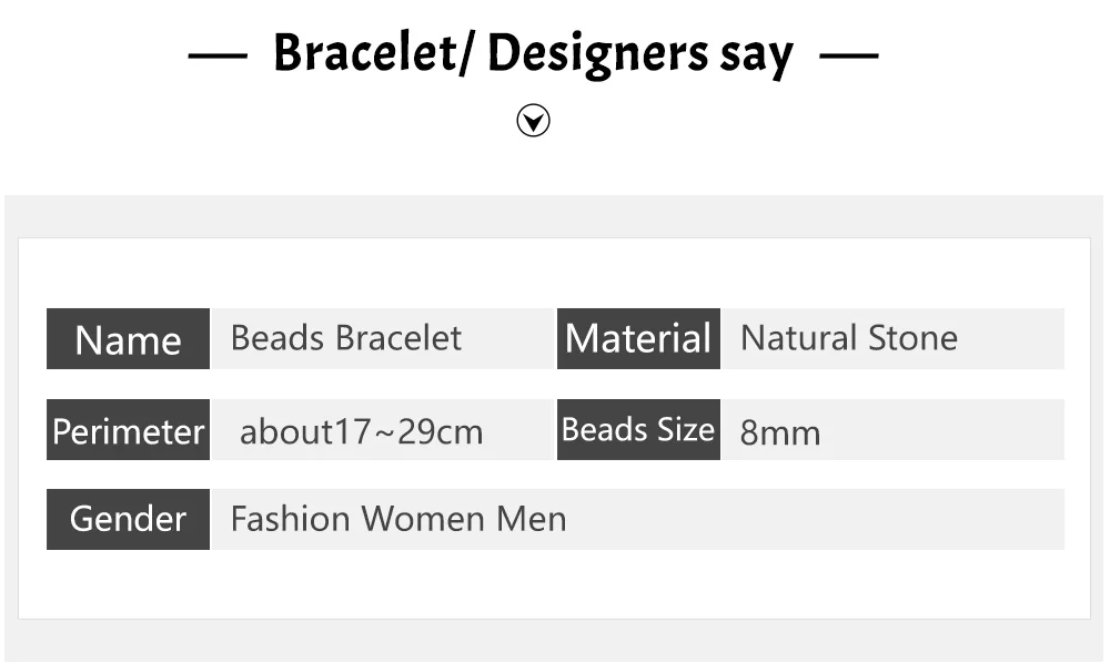 4) Bracelet is a stretch rope strand bracelet and fit most size wrists, good matching for men and women. All bracelets are measured by hand, it had a margin of error of plus or minus 1cm. Hope you can understand.