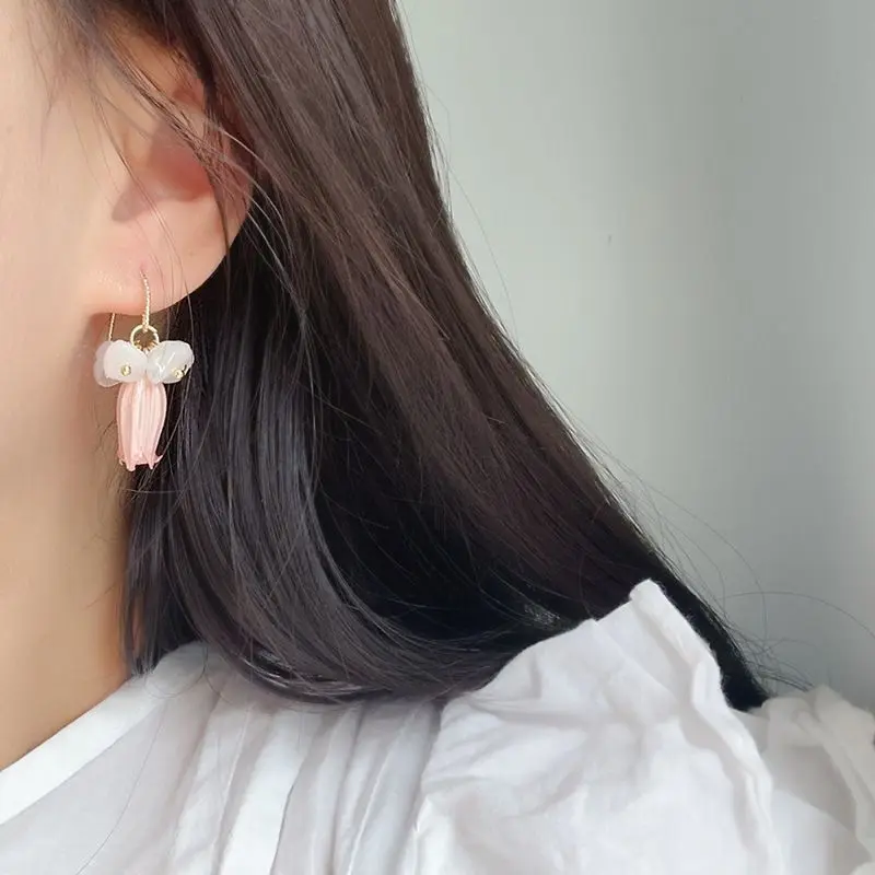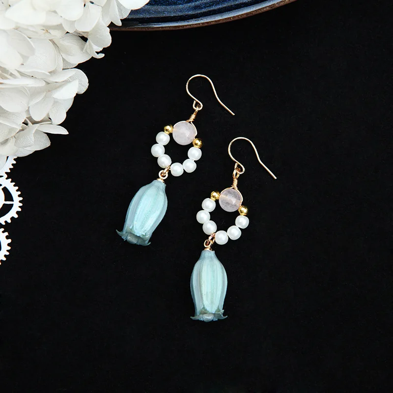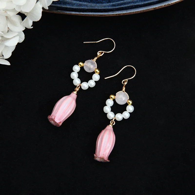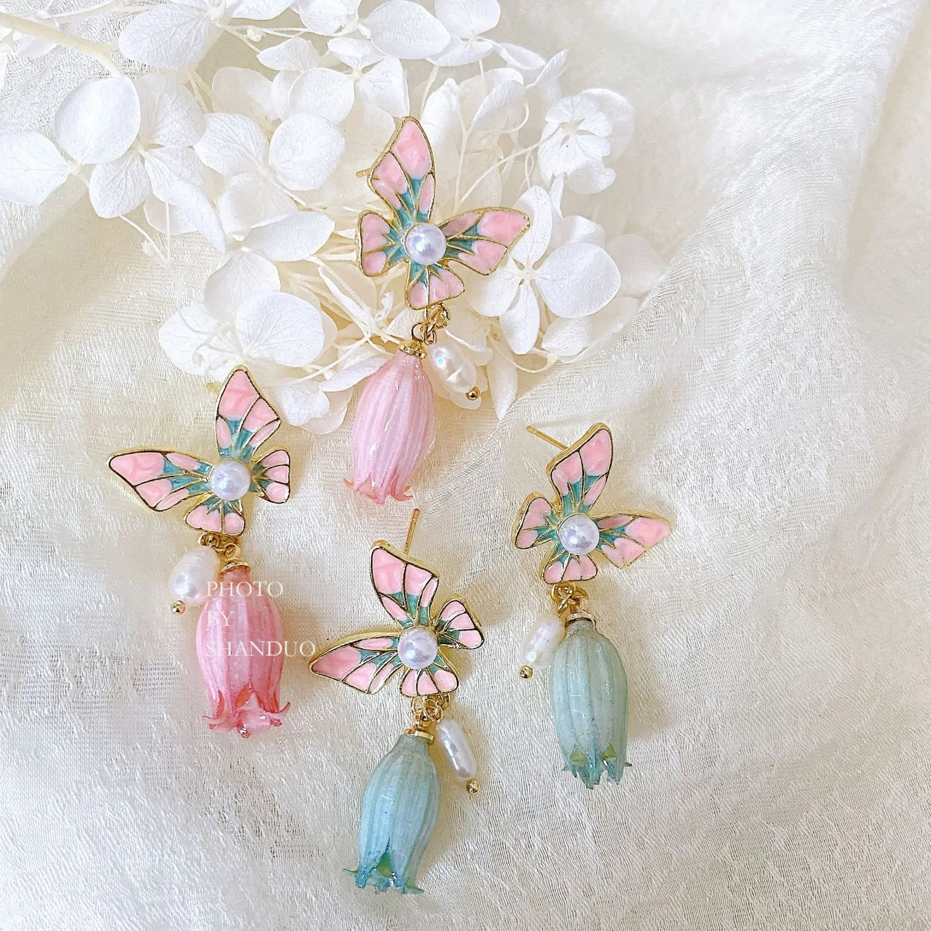 Unique Bell Orchid Dried Flower Earring Elegant Immortal Flower Boho Earrings Epoxy Resin Natural Flower Statement Jewelry 2024