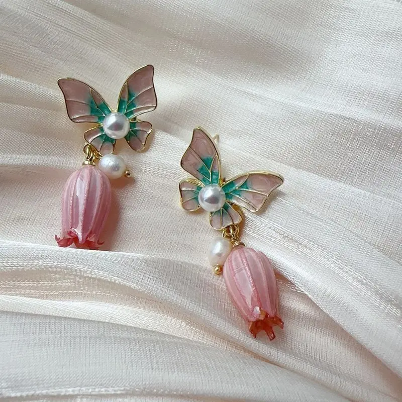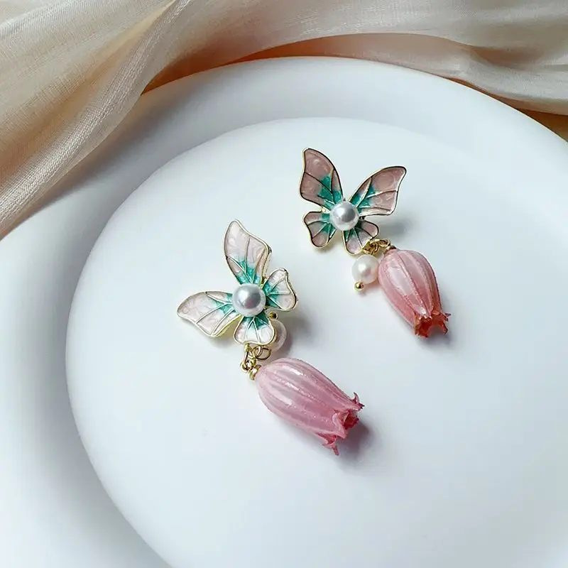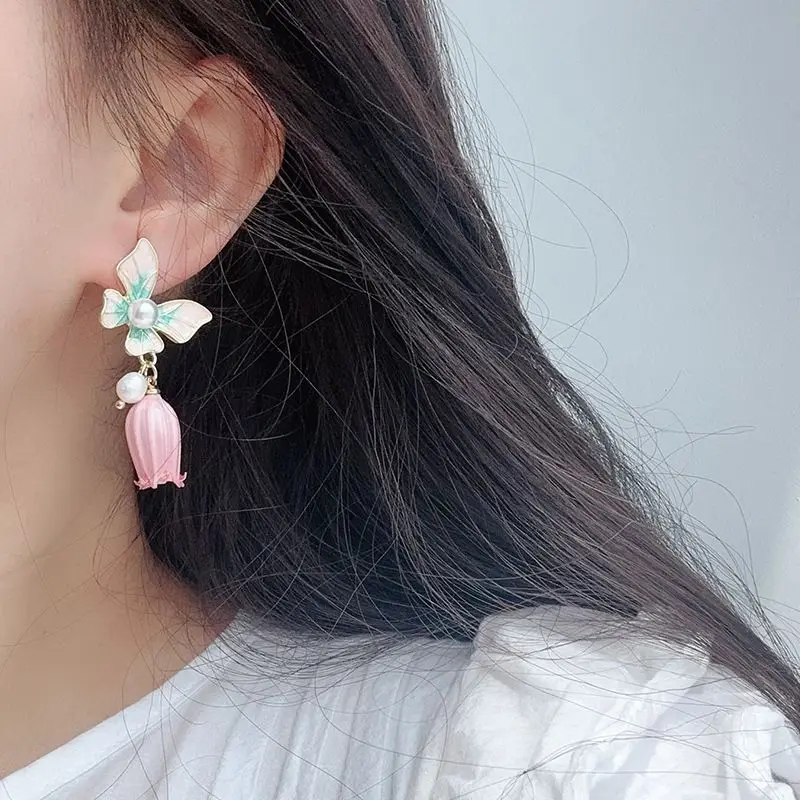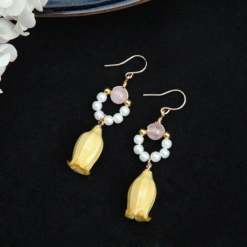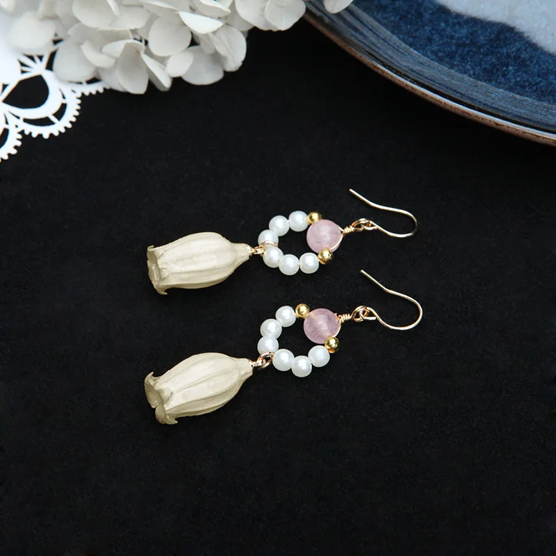 Unique Bell Orchid Dried Flower Earring Elegant Immortal Flower Boho Earrings Epoxy Resin Natural Flower Statement Jewelry 2024