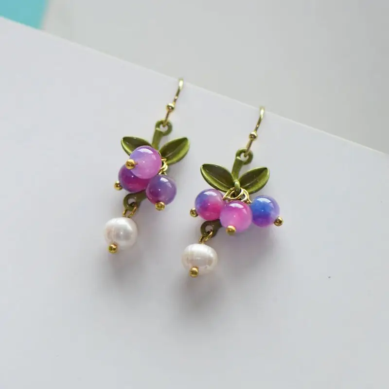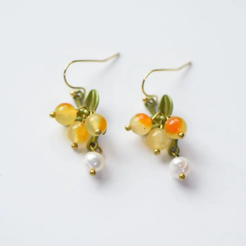 Unique Design Earring Cute Natural Stone Pearl Earrings Creative Flower With Leaf Earrings 2024 New Statement Jewelry Wholesale