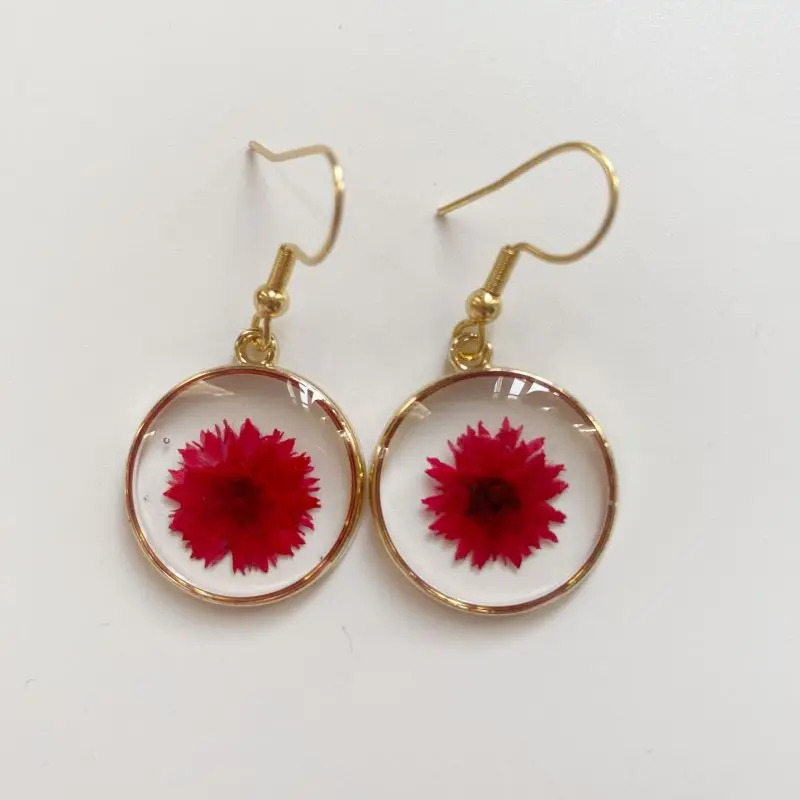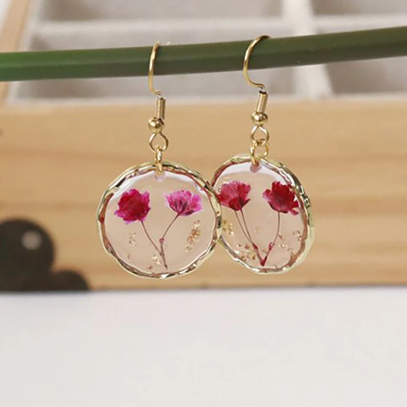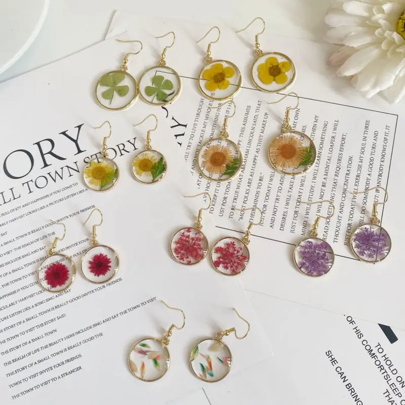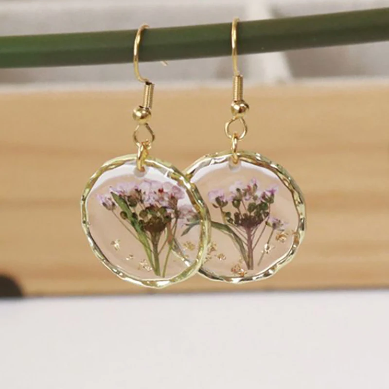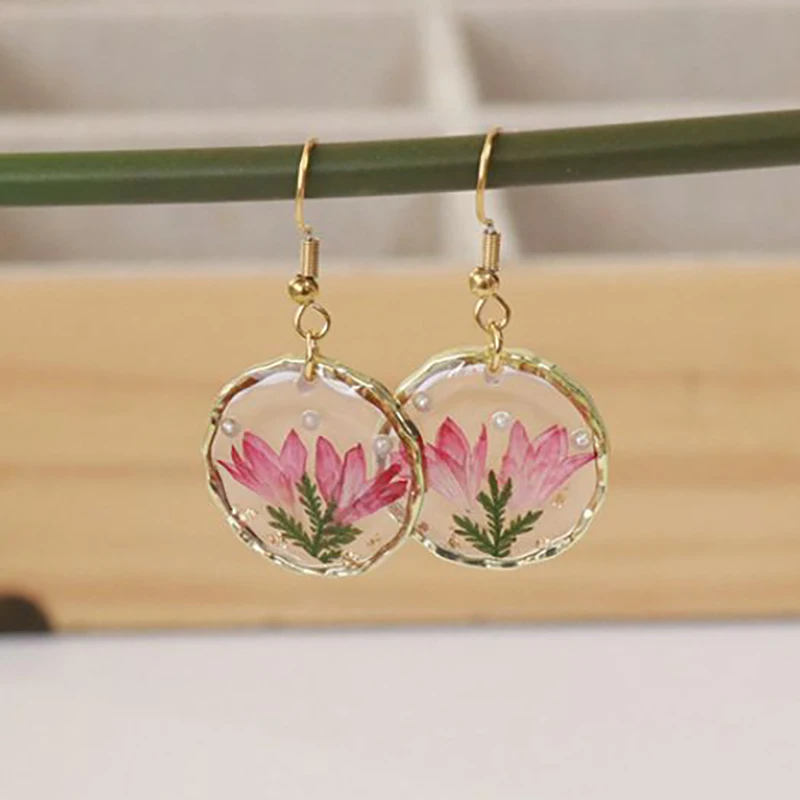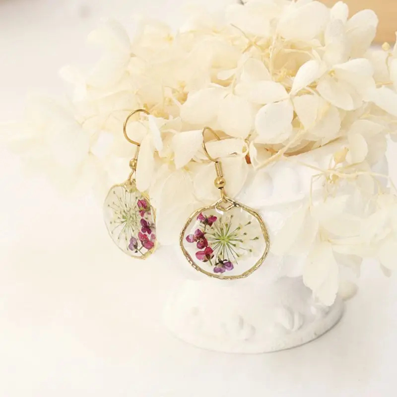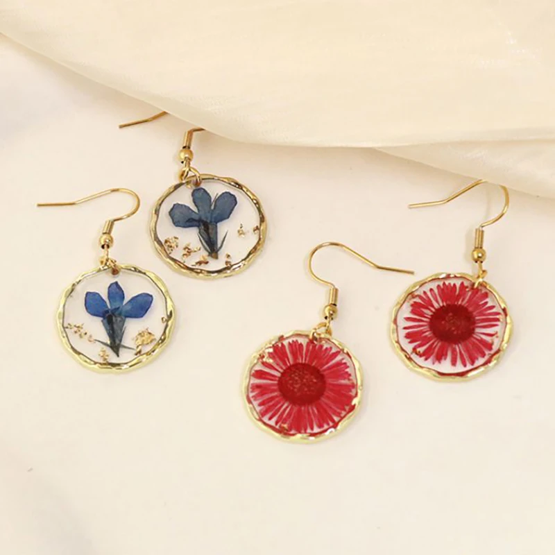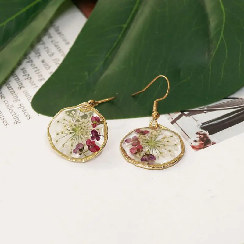 Unique Design Pressed Flower Earring Epoxy Resin Natural Flower Earrings Creative Women Statement Jewelry Elegant Round Earring
