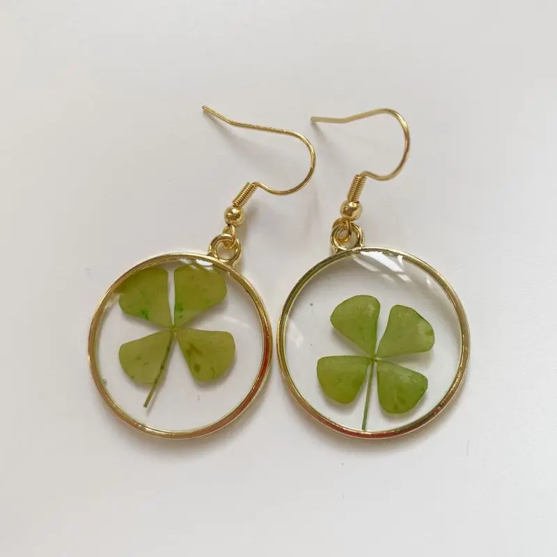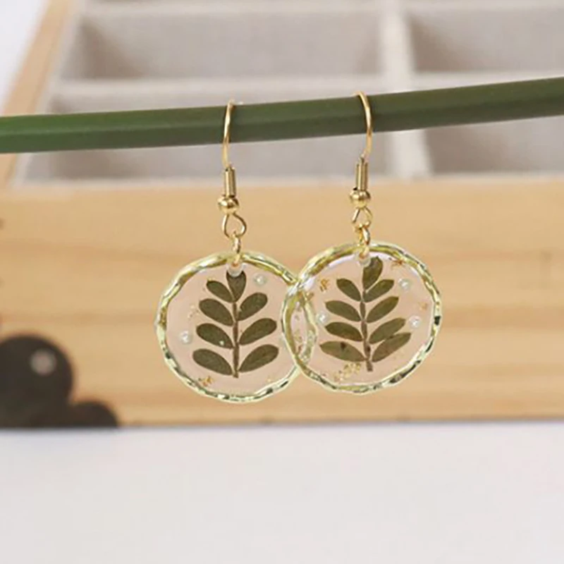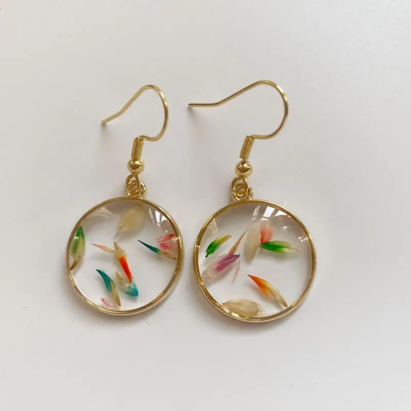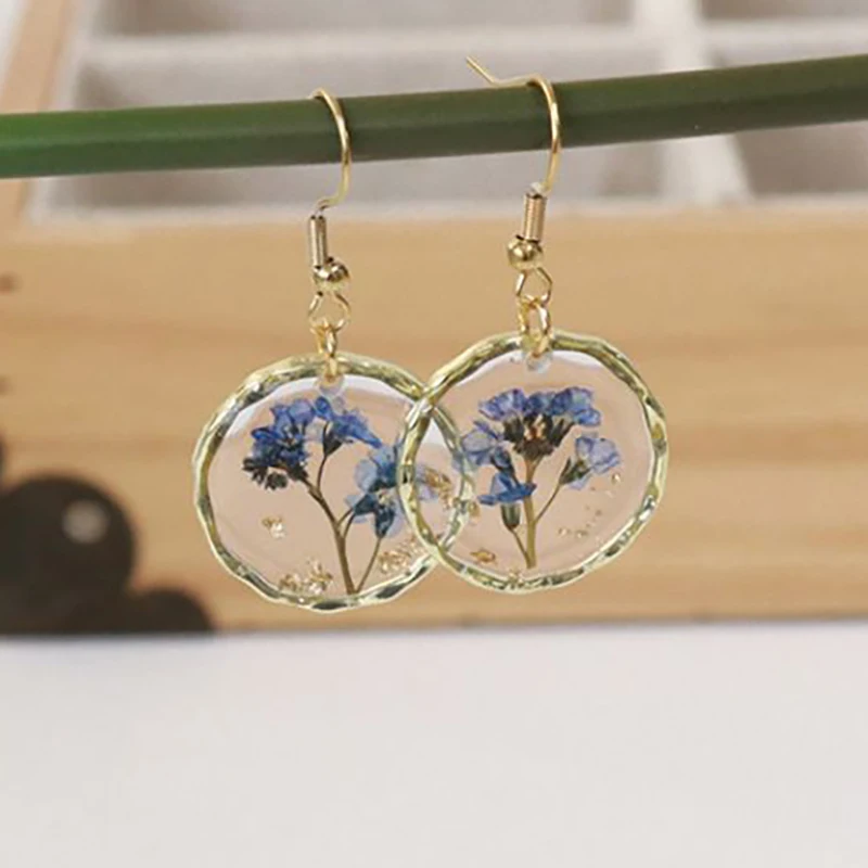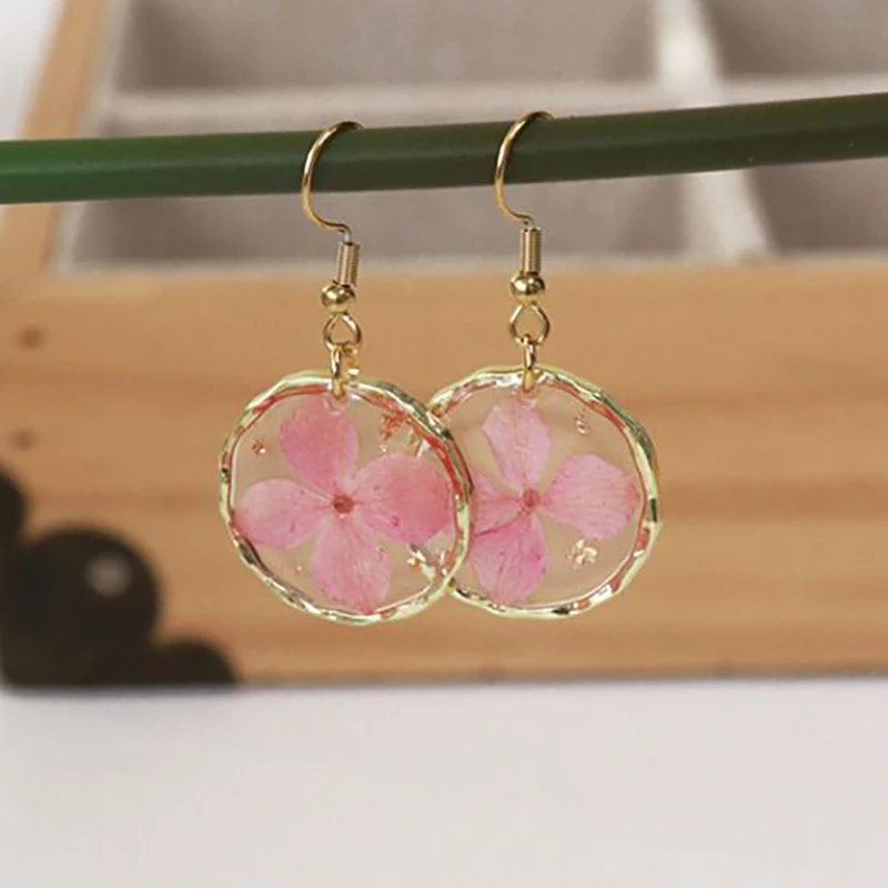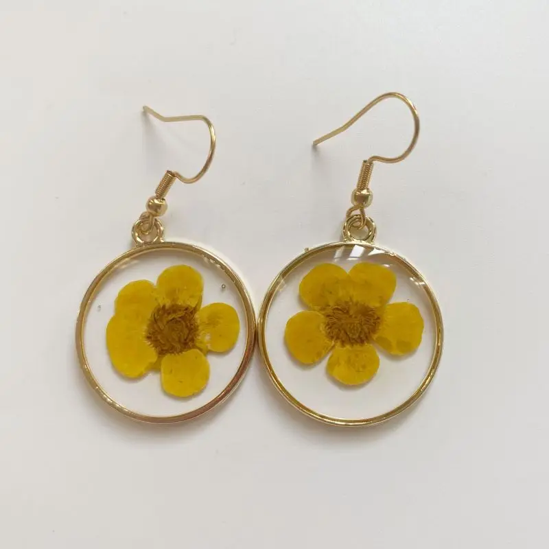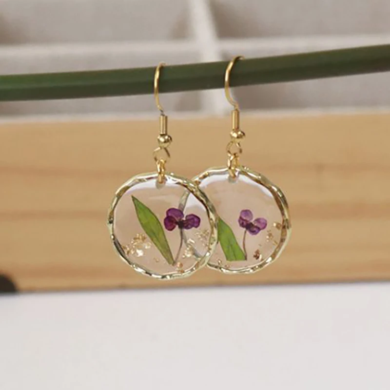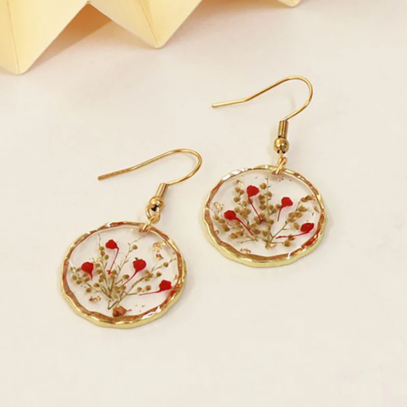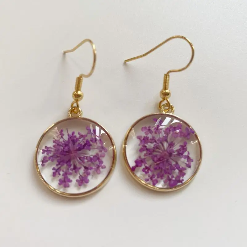 Unique Design Pressed Flower Earring Epoxy Resin Natural Flower Earrings Creative Women Statement Jewelry Elegant Round Earring