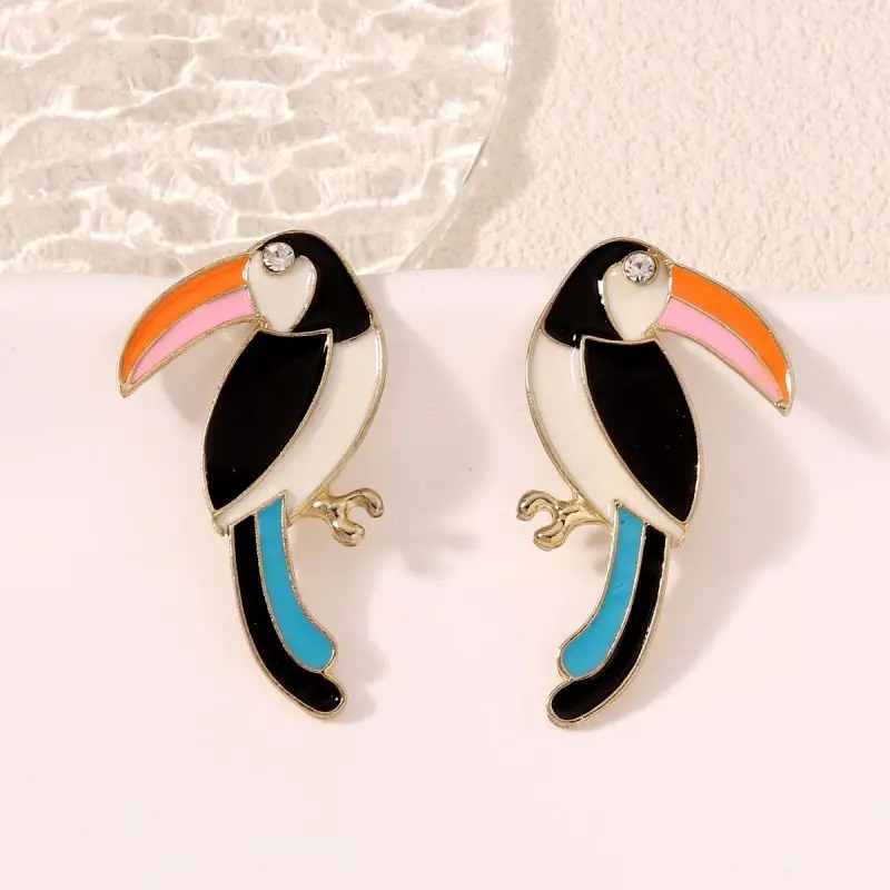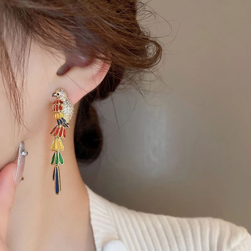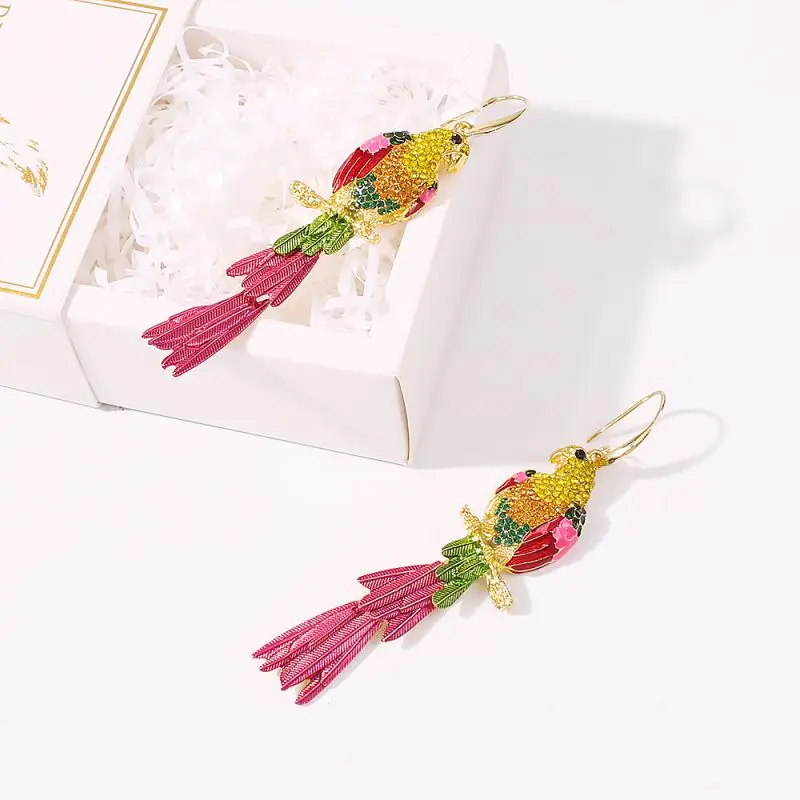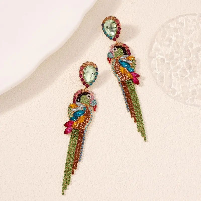 Unique Exaggerate Parrot Earrings High Quality Shiny Rhinestones Luxury Earrings Birds Pendant Statement Jewelry Party Earrings