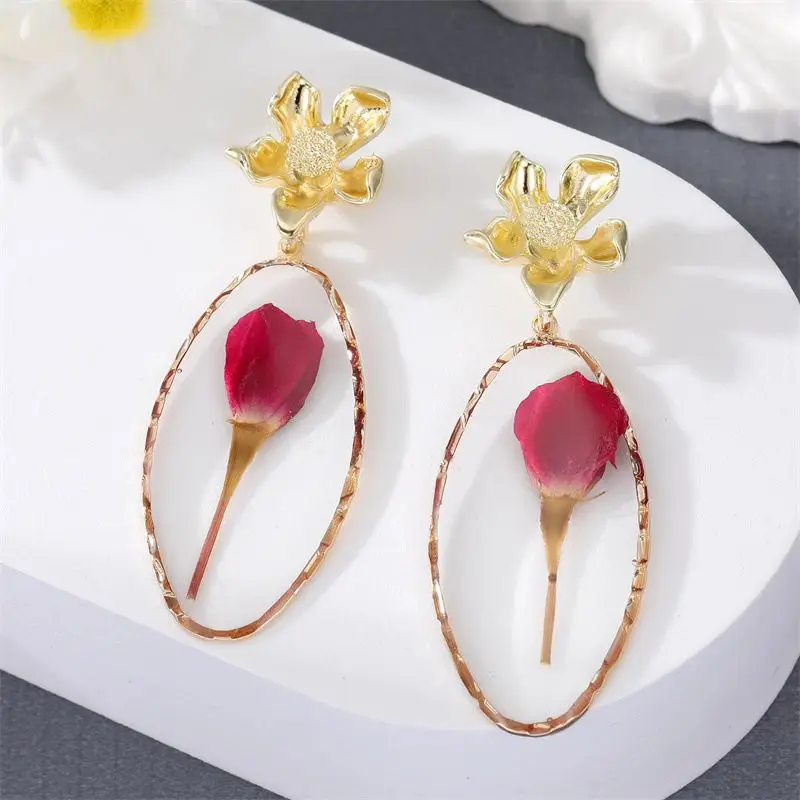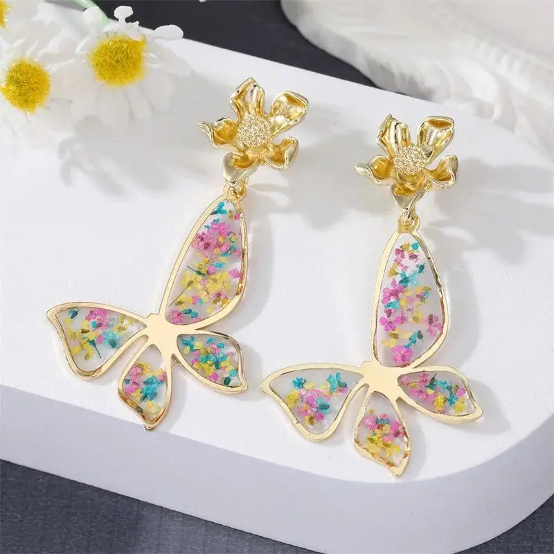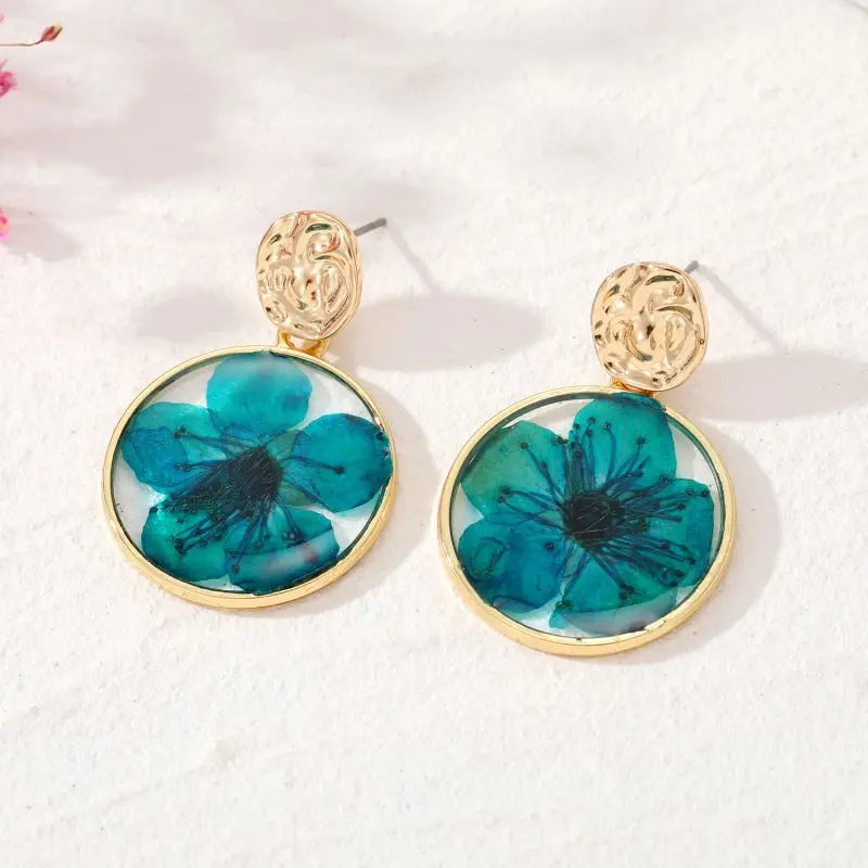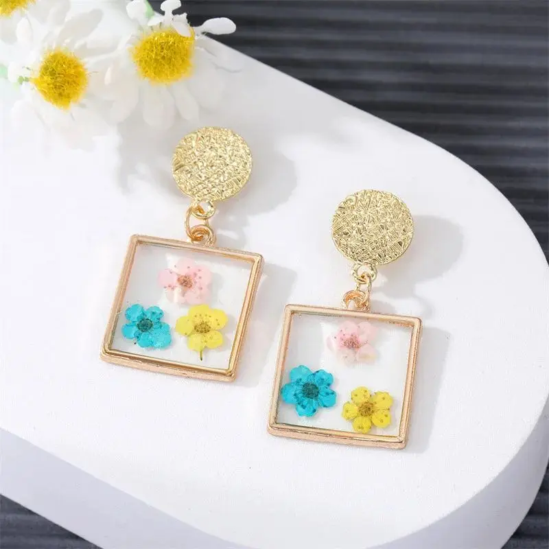 Unique Immortal Flower Earrings Epoxy Resin Pressed Flower Natural Earrings Sweet Floral Drop Earrings For Holiday Boho Jewelry