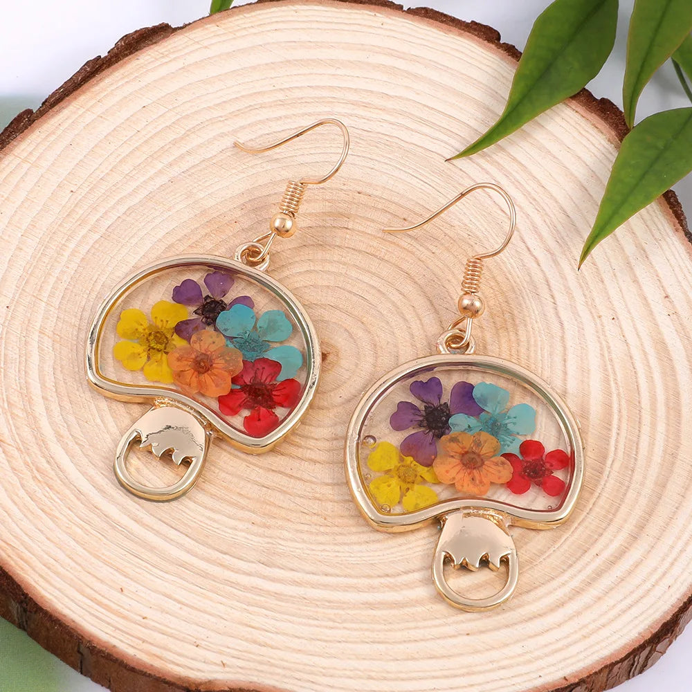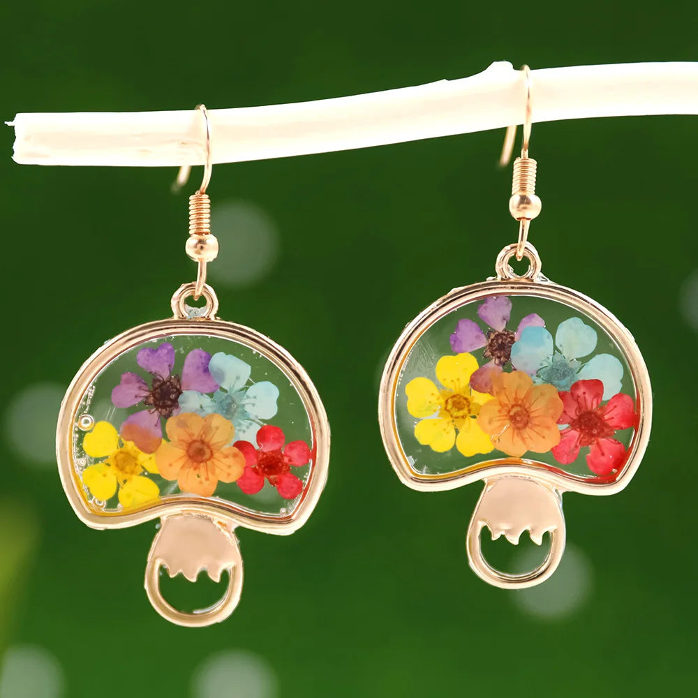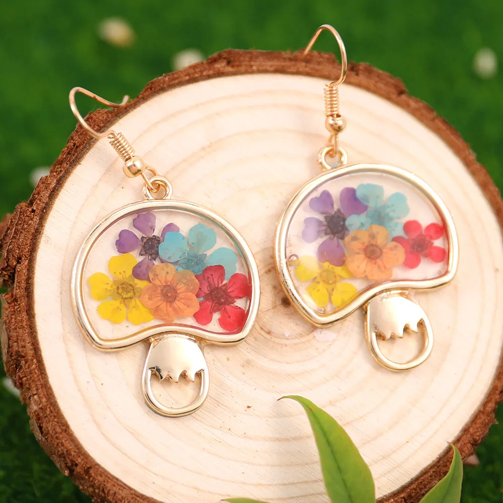 Unique Natural Pressed Flower Earrings Cute Mushroom Earring With Dried Flower Jewelry 2024 Epoxy Resin Flower Earring Wholesale