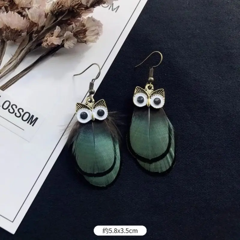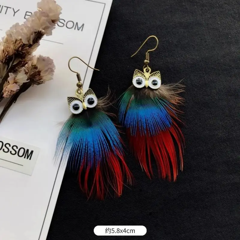Unique Owl Earrings Creative Imitation Peacock Feathers Tassel Earrings Vintage Exaggerate Boho Earrings Statement Jewelry 2024