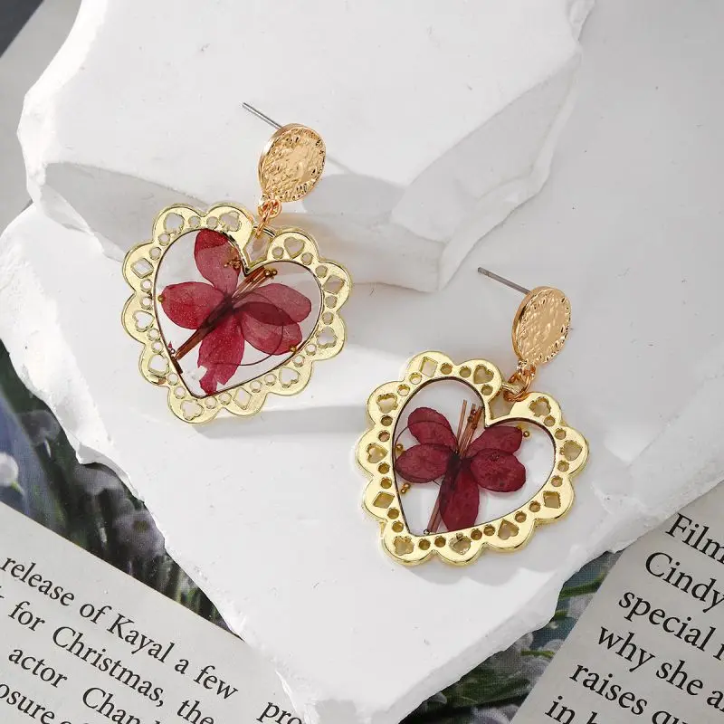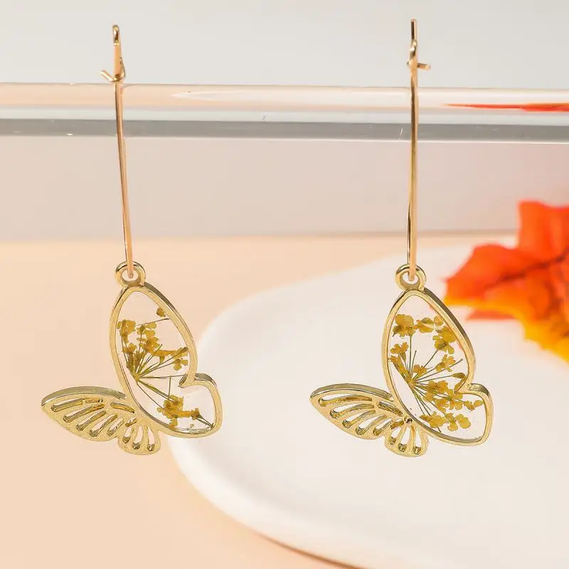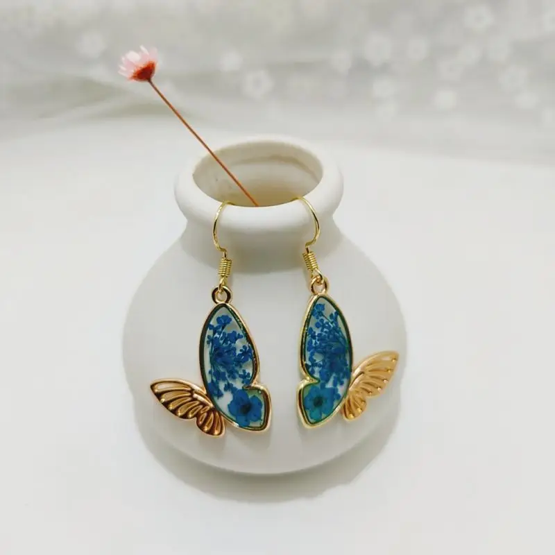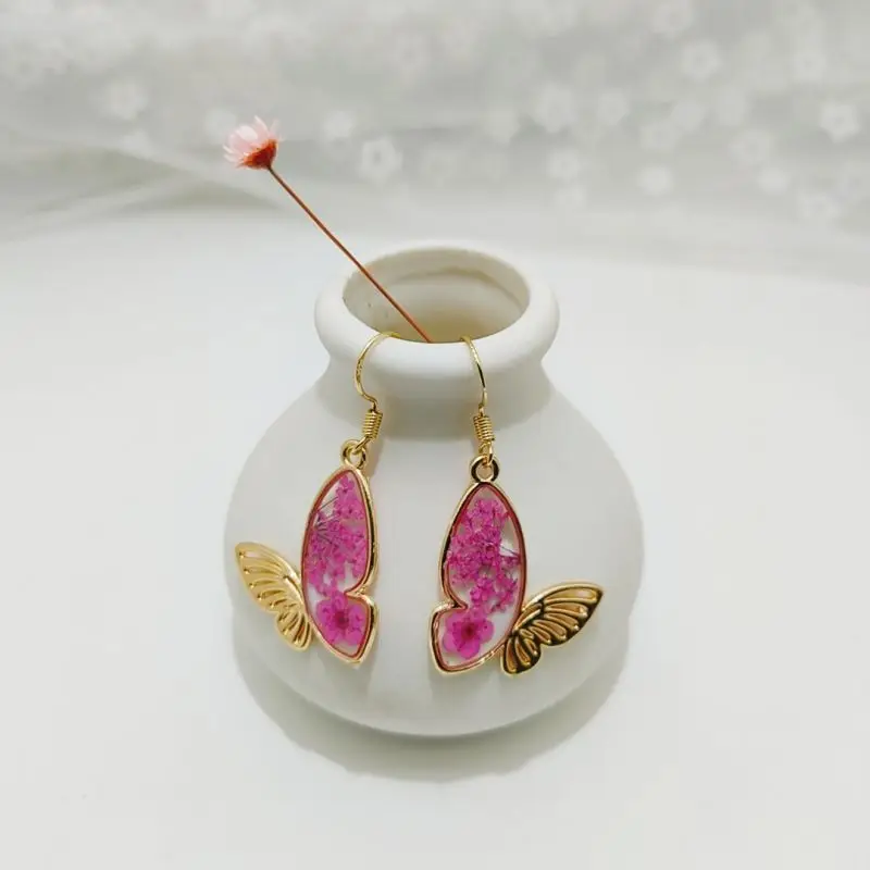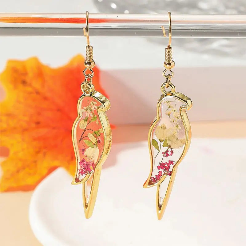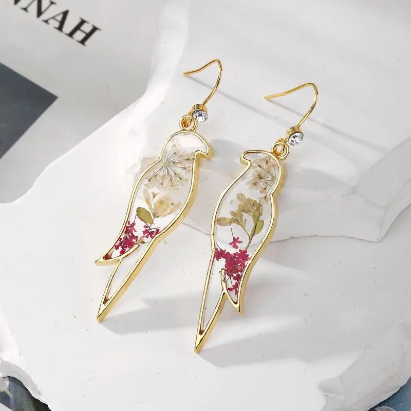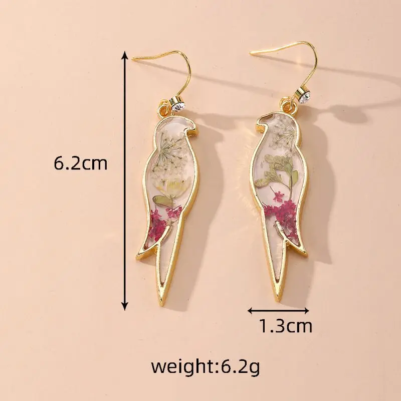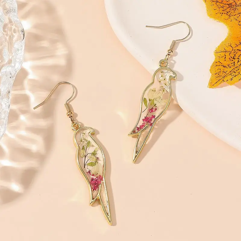 Unique Small Bird Shape Pressed Flowers Earrings Creative Epoxy Resin Natural Flower Butterflies Shape Earring Statement Jewelry