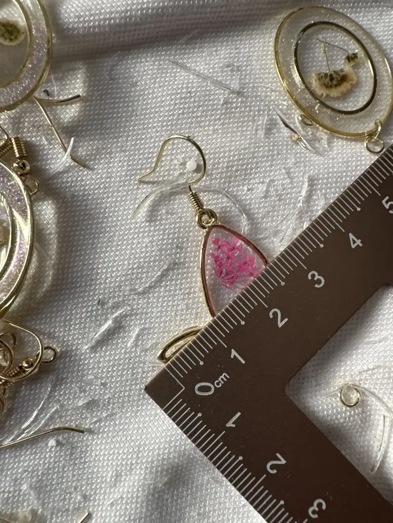 The dried flower earrings are hand-made, and the real flowers are in different shapes. There is no way to make them exactly the same as the pictures. Due to the lighting factor, the actual earrings may be slightly darker than the pictures. If mind, please do not purchase them. Thank you