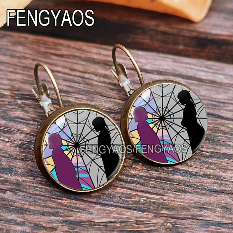 Vintage Movie Wednesday Addams Stud Earrings Spider Web Earring Retro Addam Family Jewelry