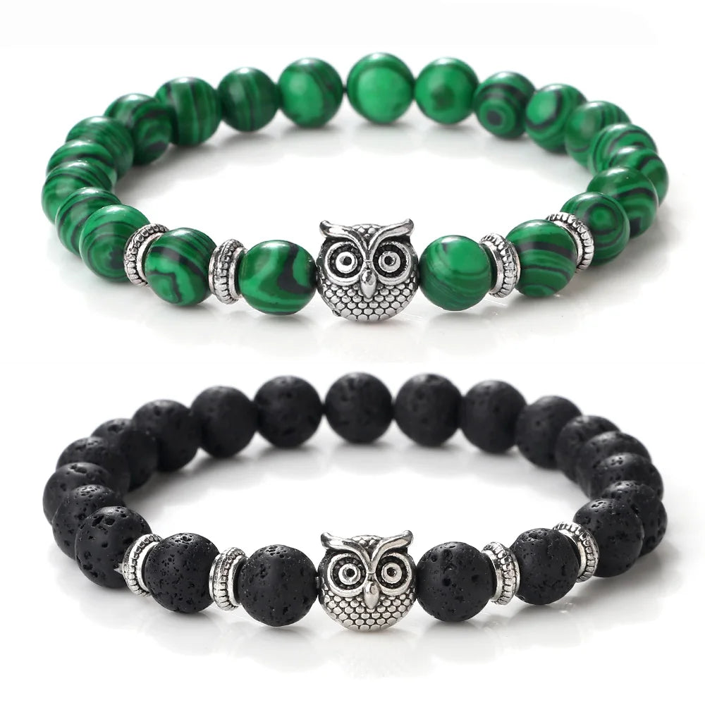 Vintage Owl Charm Bracelets & Bangles For Men Women Natural Lava Stone Malachite Beads Couple Bracelets Friendship Jewelry Gifts