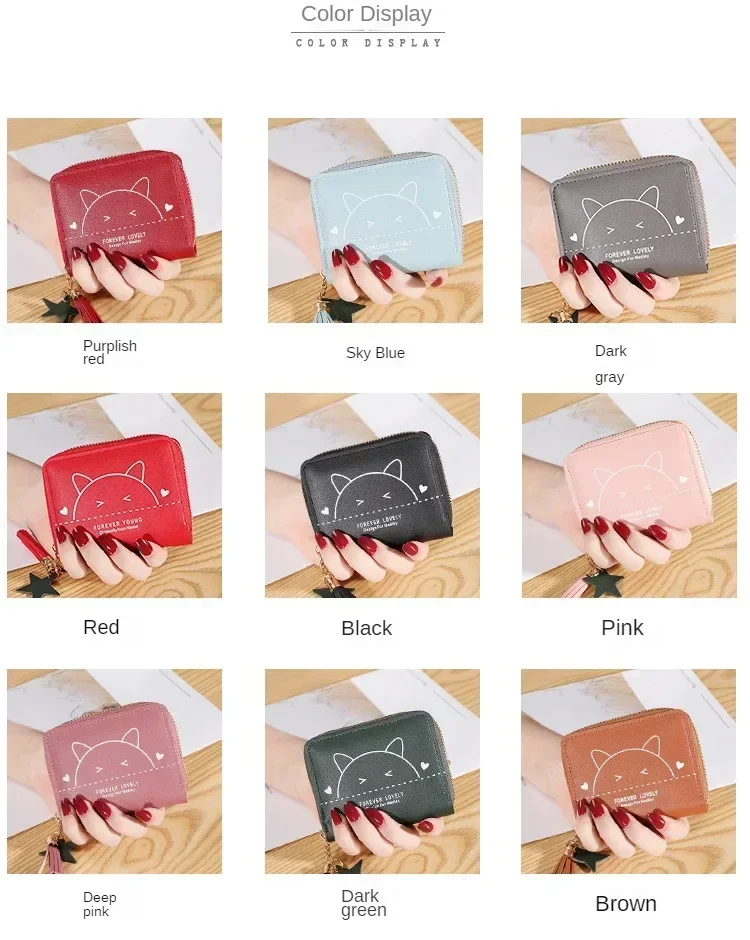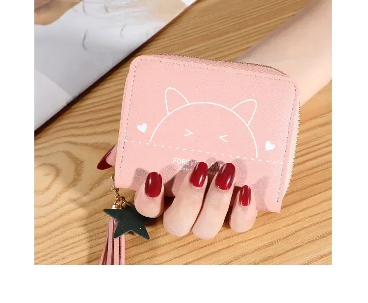 Wallet Simple Women'S Wallet Short Zipper Small Wallet Tassel Cartoon Animal print Coin Purse Female Clutch Card Holder Purse