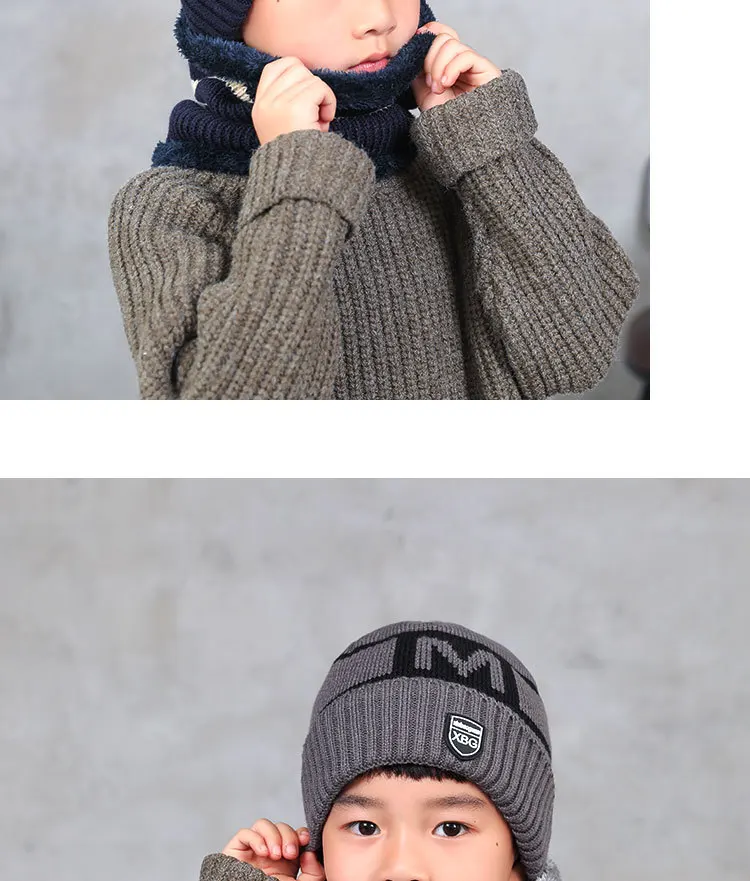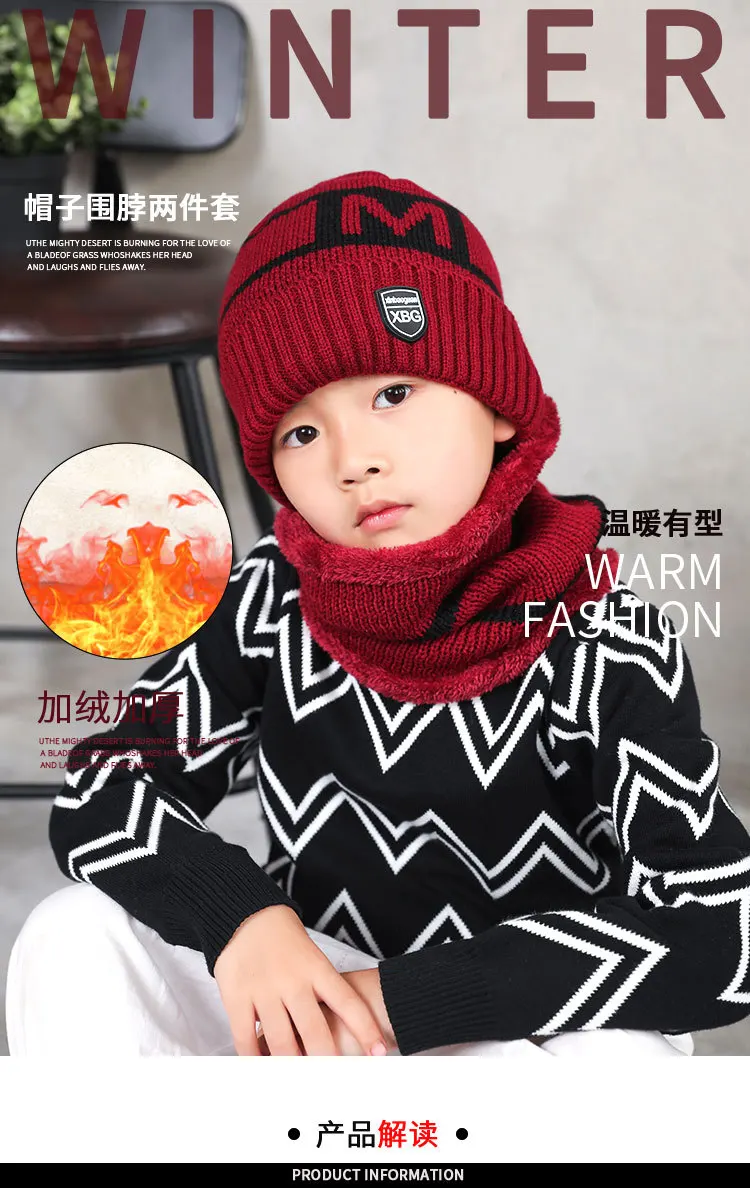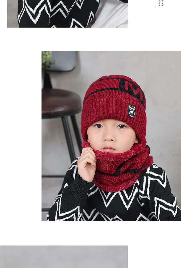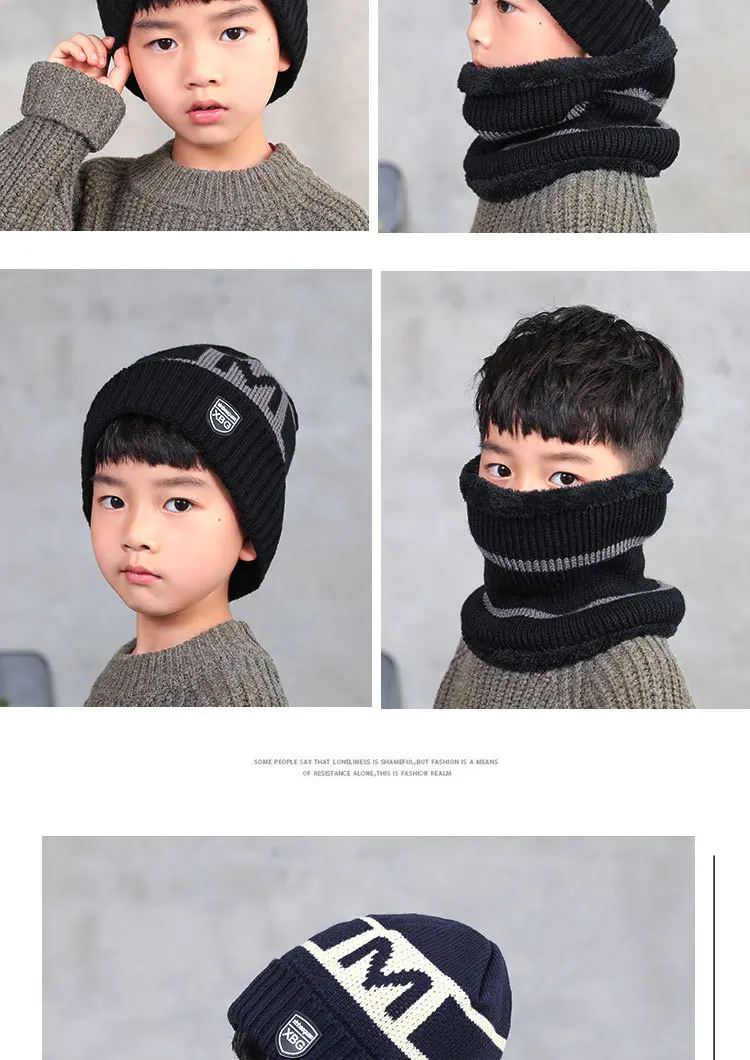 Warm Kids Winter Knitted Hat and Fleece Neck Warmer Snood Scarf Set for Boys Girls Age 2 3 4 5 6 7 8 9 10 Years Old
