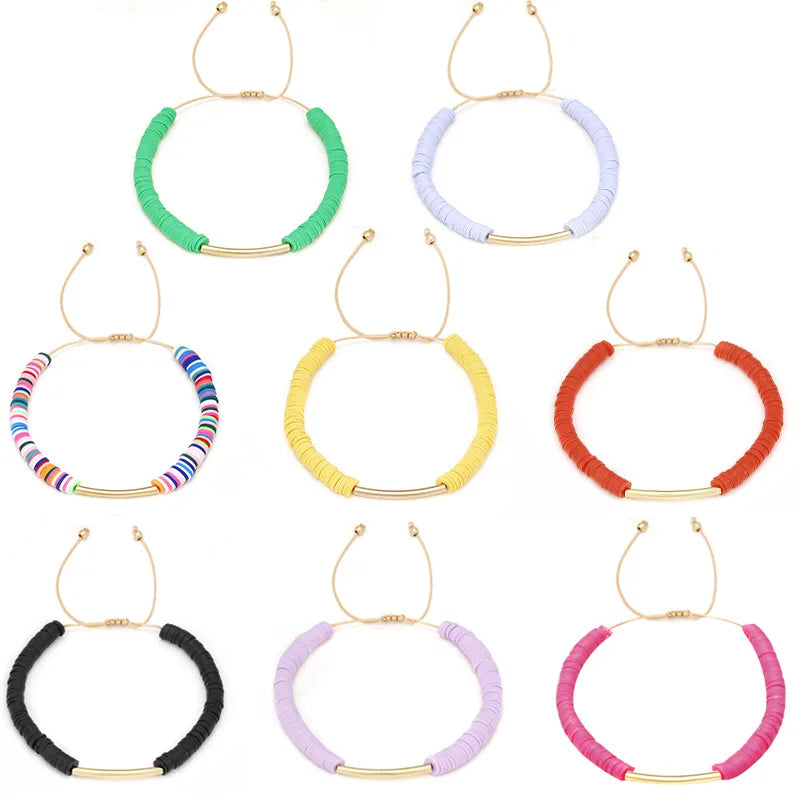 WG 1pc Polymer Clay Beaded Bracelet Hand-Woven Colored Pottery Beaded Copper Tube Bracelet Beach Holiday Jewelry
