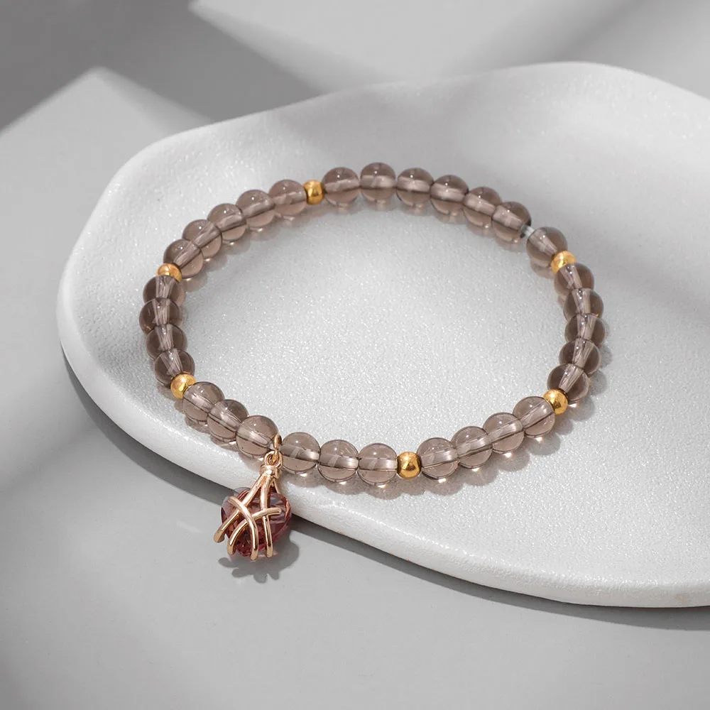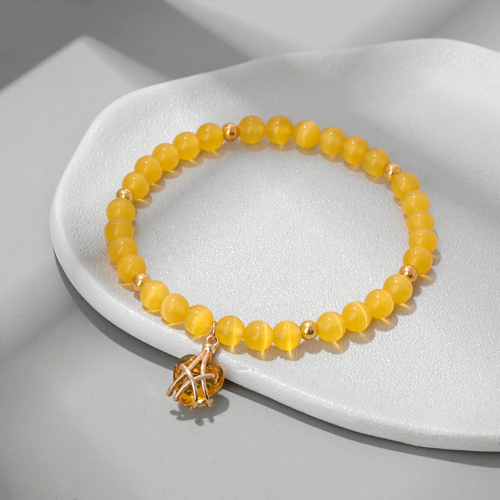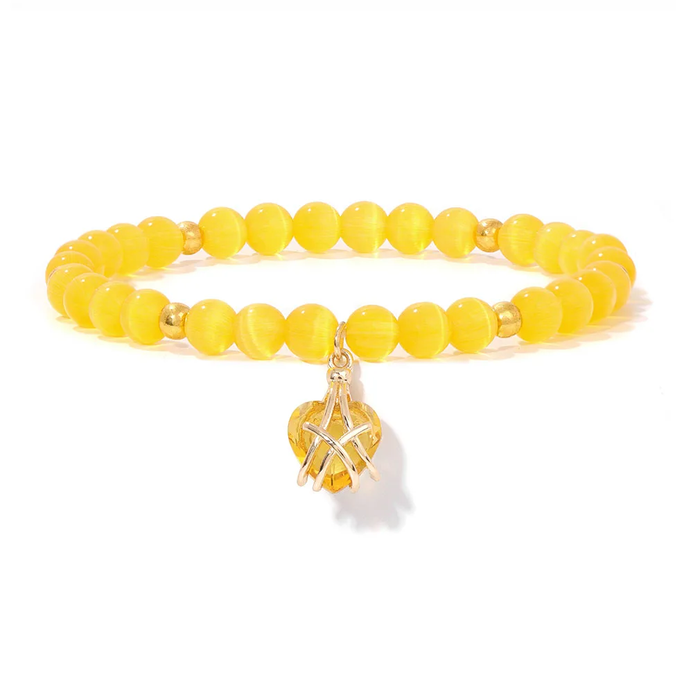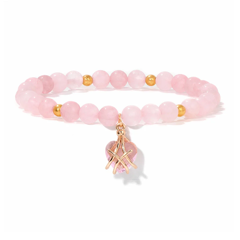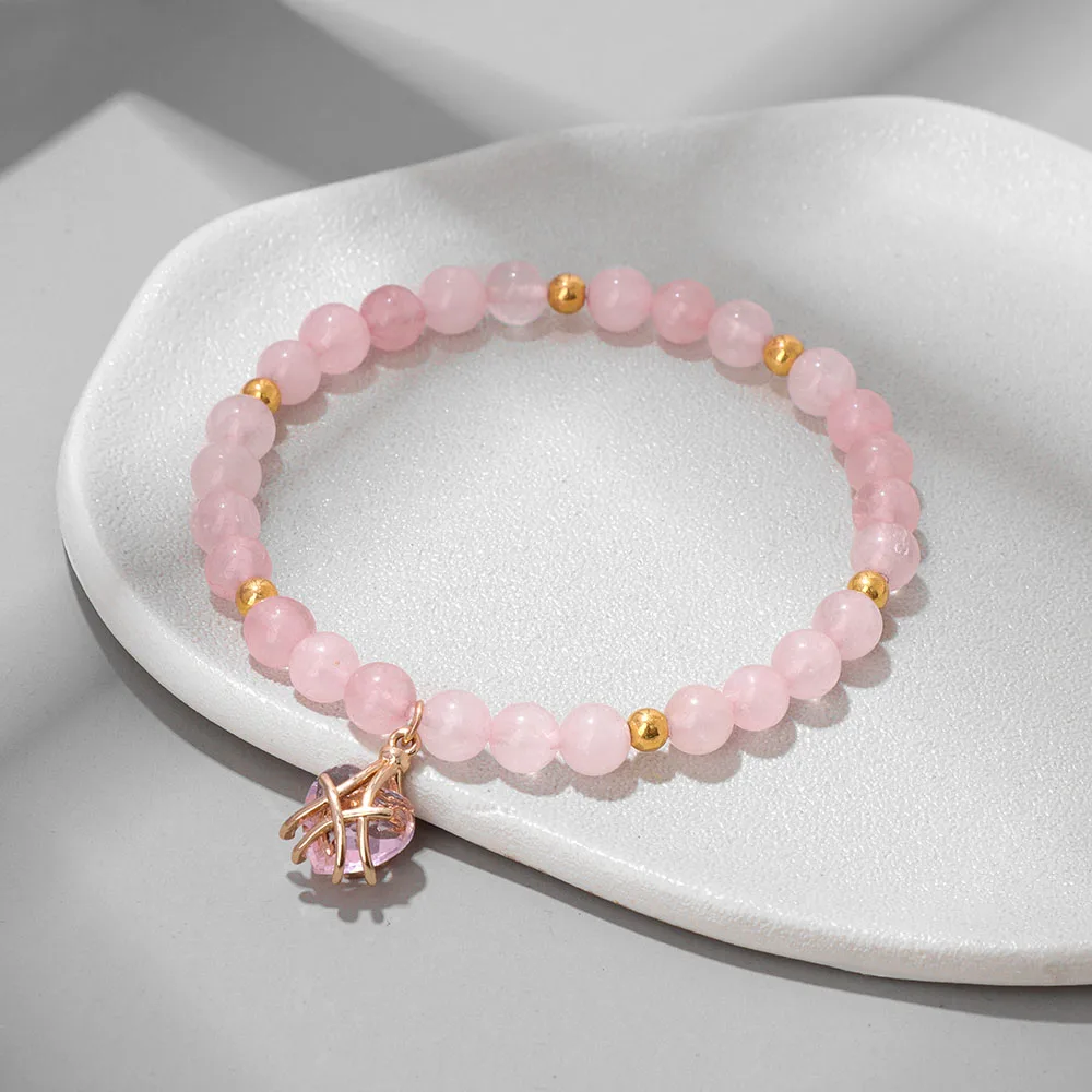 Wholesale Natural Stone Pink Rose Quartzs Beads Bracelet Women Tiger Eye Cat Eye Beads Heart Pendant Bracelets Healing Jewelry