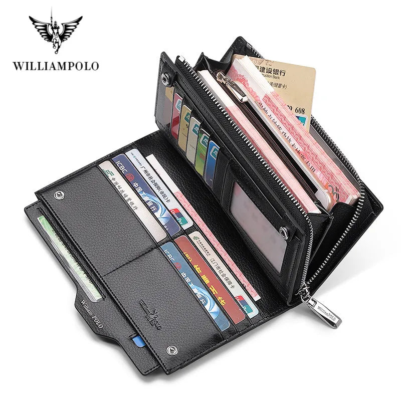 WilliamPOLO Men's wallet Genuine Leather Male Wallet Men Credit Card Holders Fashion Mobile Phone Bag Zipper Purse Handbag