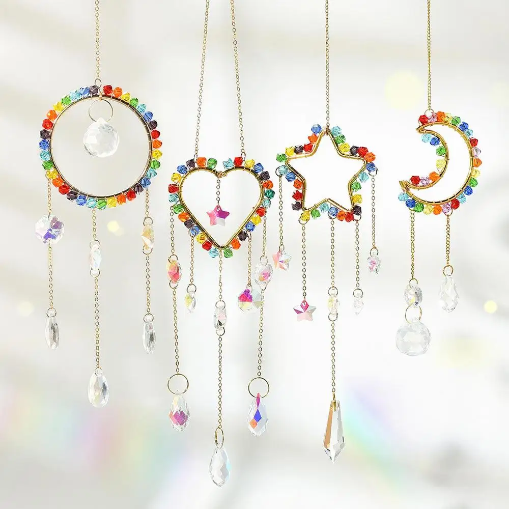 Wind Chime Prism SuncatcherRainbow Maker Light Catcher Sun Moon Star Heart Shape Handmade Crystal Pendants For Window Garden