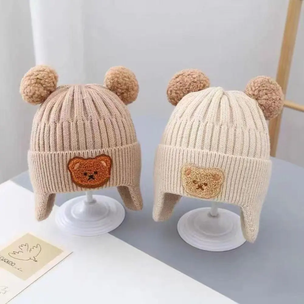 Winter Baby Beanie Cap Cartoon Bear Ear Protection Knitted Hat for Toddler Boys Girls Cute Korean Warm Kids Crochet Hats