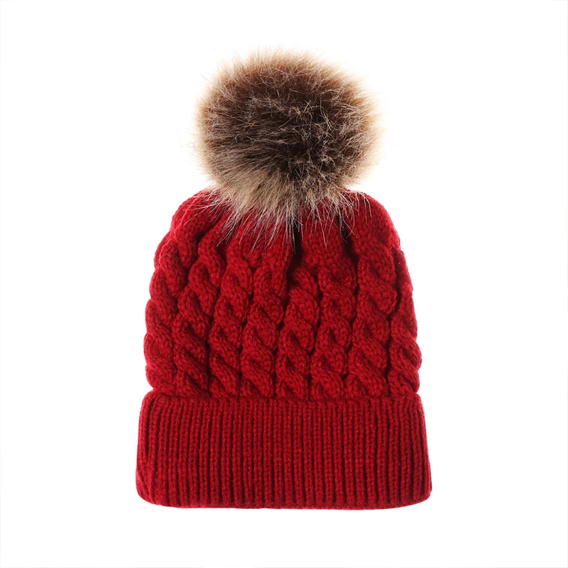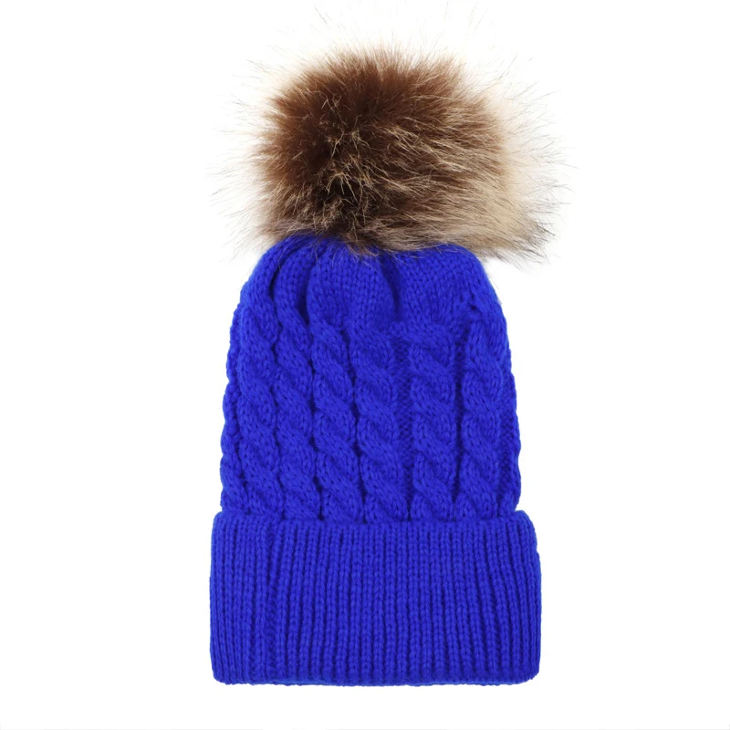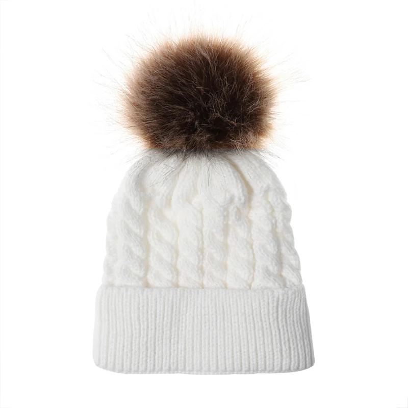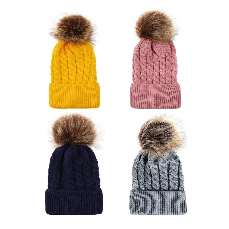 Winter Hats For Kid Knit Beanie Baby Hat Children Fur Pom Pom Hats For