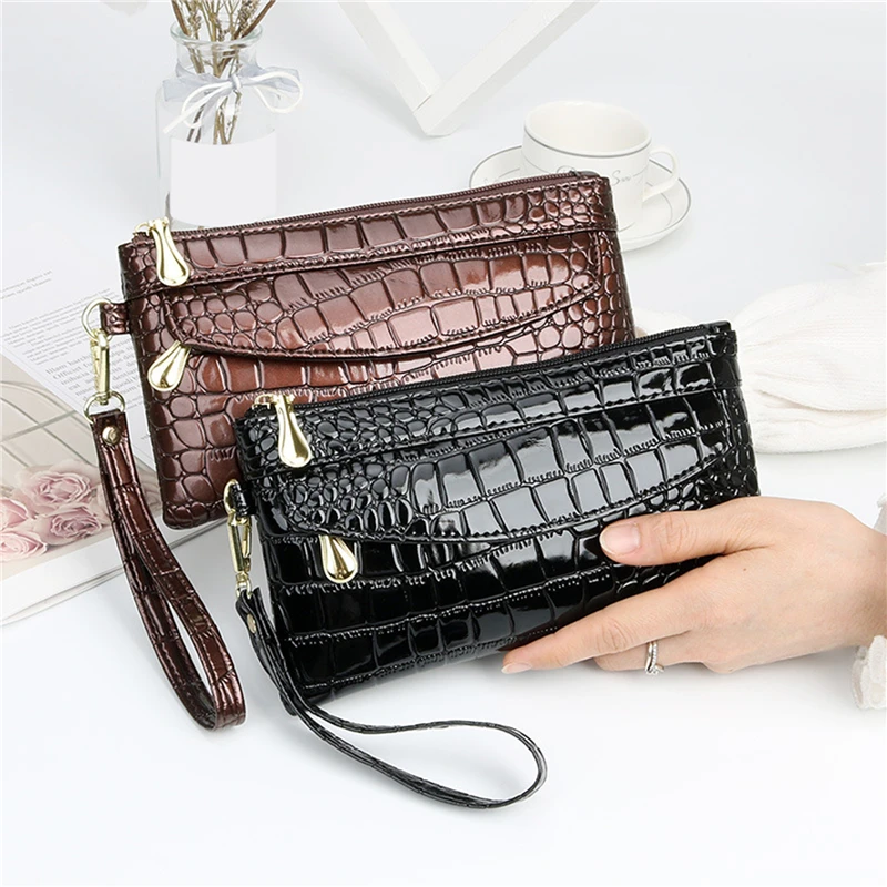 Women Bag Black PU Clutch Long Casual Wallet Litchi Grain Coin Purse Female Bag Wrist Bag Zipper Phone Pocket Credit Card Holder