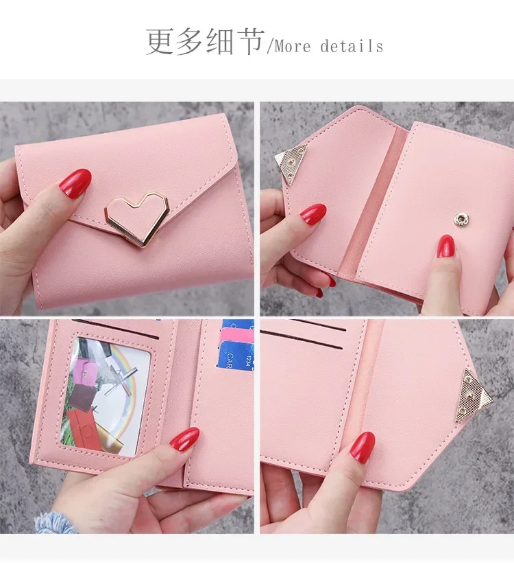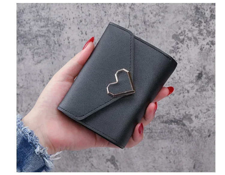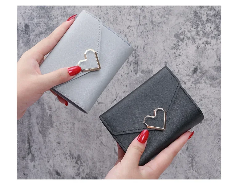Women Heart Short Small Wallet PU Leather Folding Multi Function Clutch Bag Small Purse Female Hasp Card Holder Coin Purses