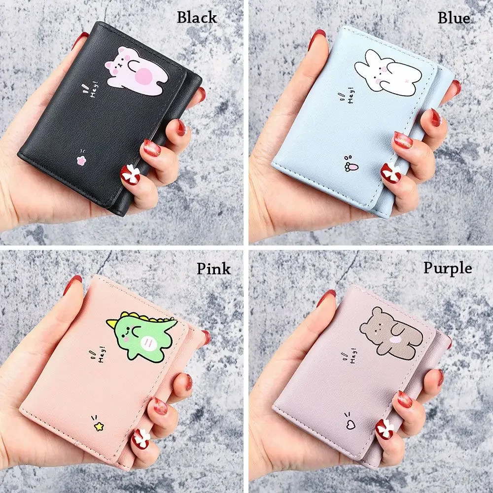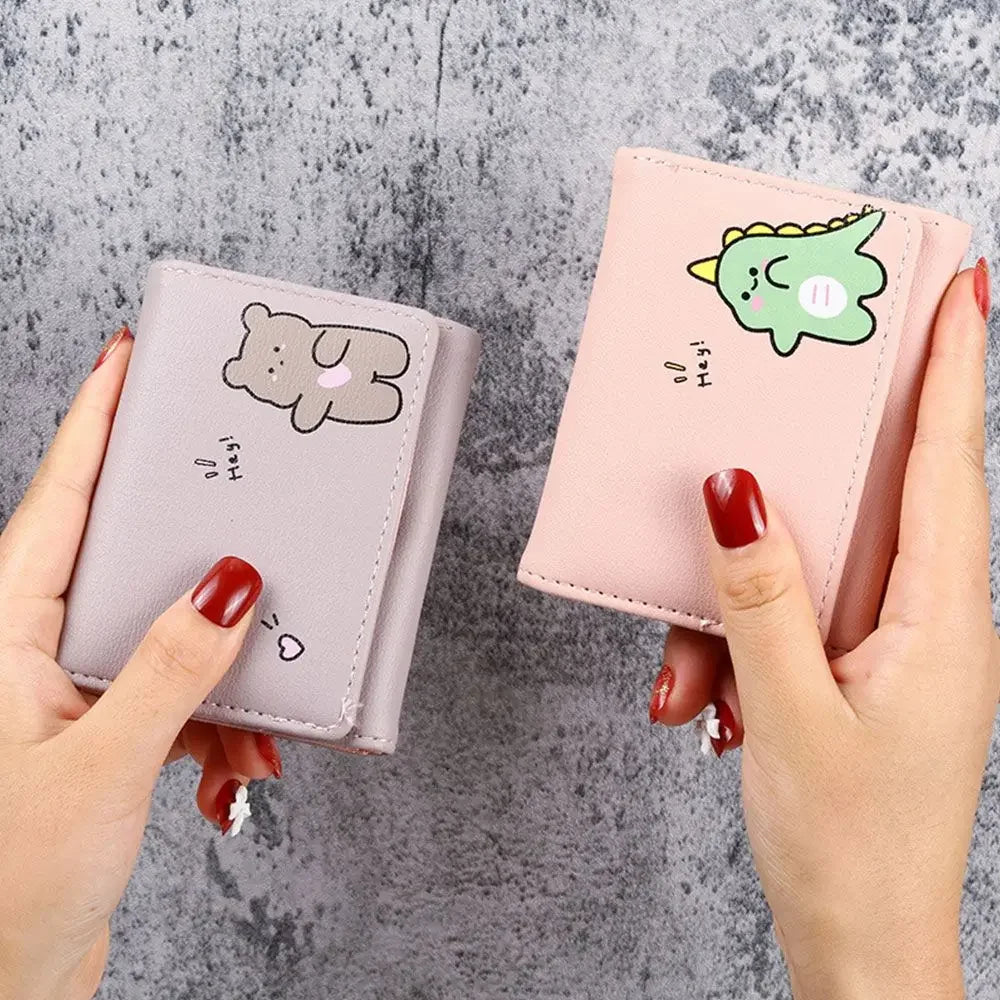 Women Kawaii Animals Short Wallet Money Bags Purse Female Small ID Card Holder Girl Ladies Coin Purses