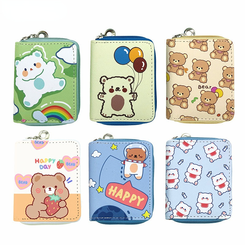 Women Kawaii Bear Wallets Pocket Purse Girls Card Holder Patchwork Wallet Lady Female Fashion Short Coin Purse Money Bag