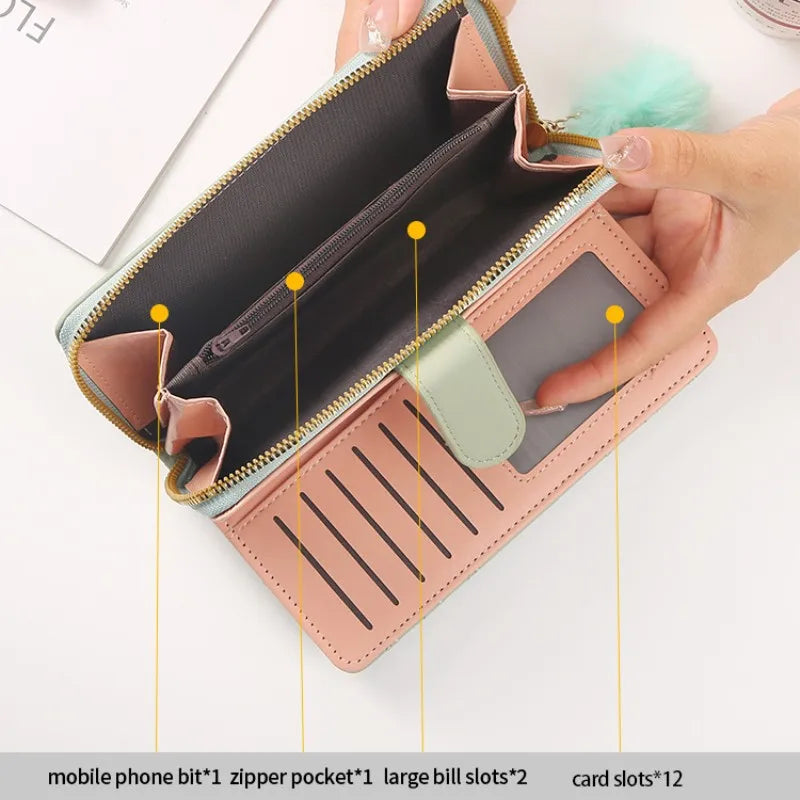 Women Long Wallet Pu Leather Card Holder Large Capacity Hasp Zipper Coin Purse Multi Card Organizer Cell Phone Wristlet Handbag