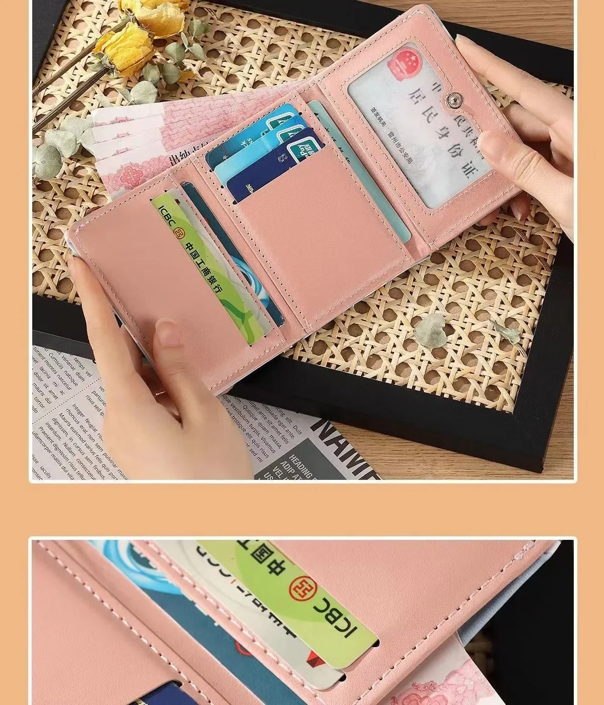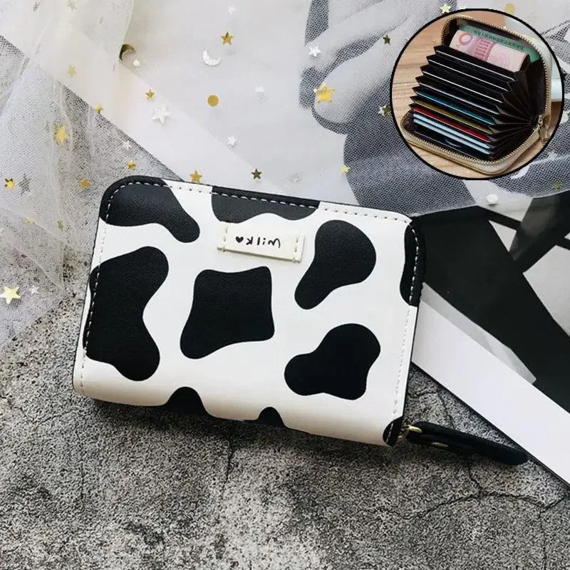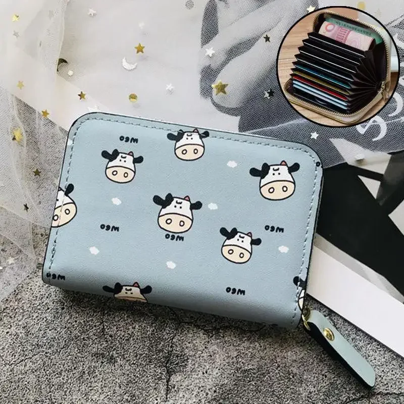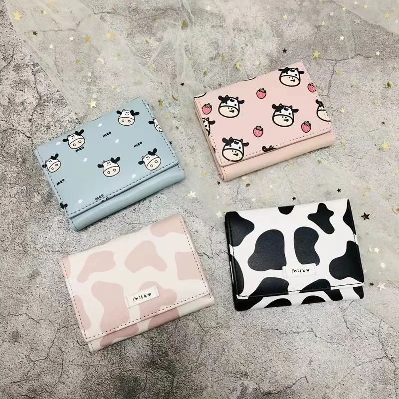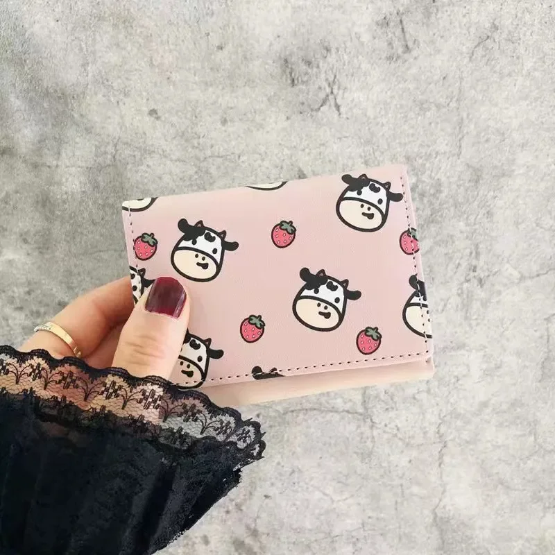Women New Fashion Wallet Pu Leather Cartoon Cow Cattle Short Ladies Multi-card Slot Coin Purses Student Cute Triple Fold Wallet