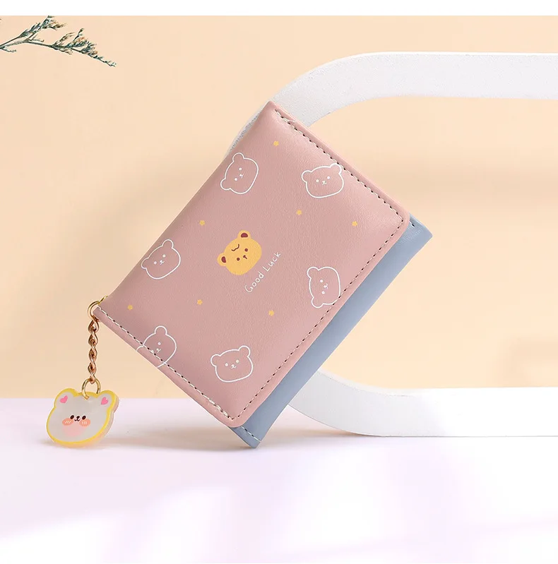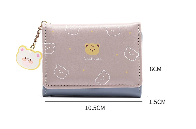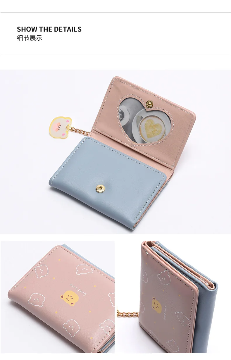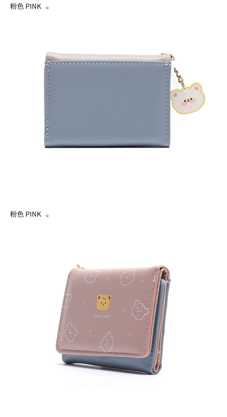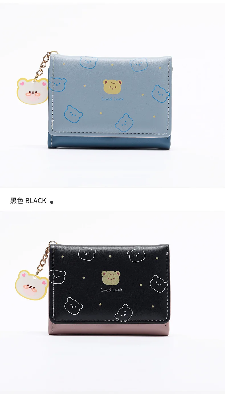 Women Short Thin Korean Version Cute Cartoon Bear Ladies Small Wallet Student Three-fold Wallet Female Fashion Short Coin Purse