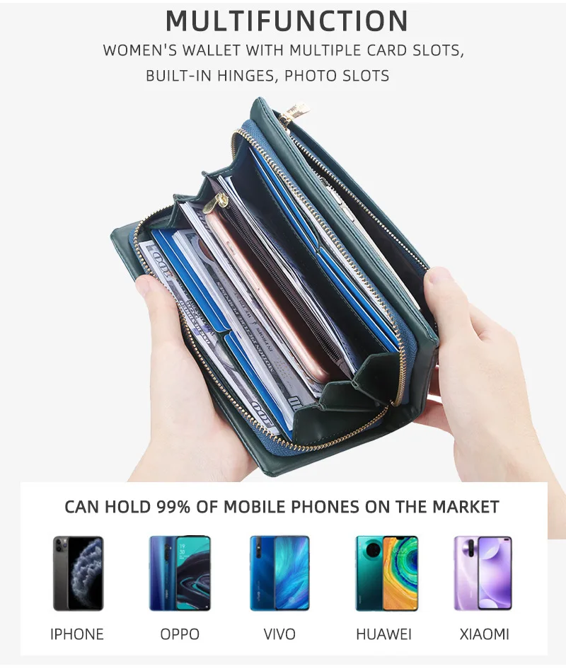 Women Wallets Long Purses for Women with Zipper Coin Pocket Top Quality Card Holder Female Red Soft Leather Wallet Ladies Purse