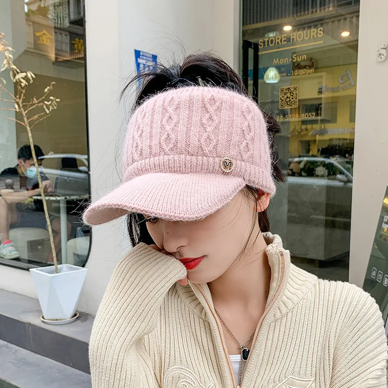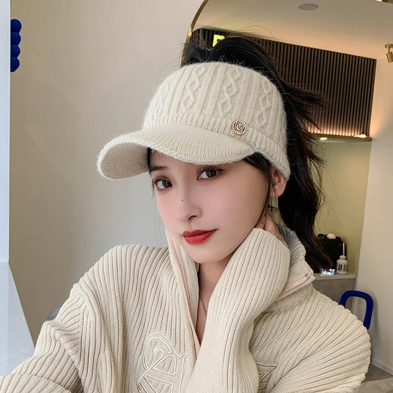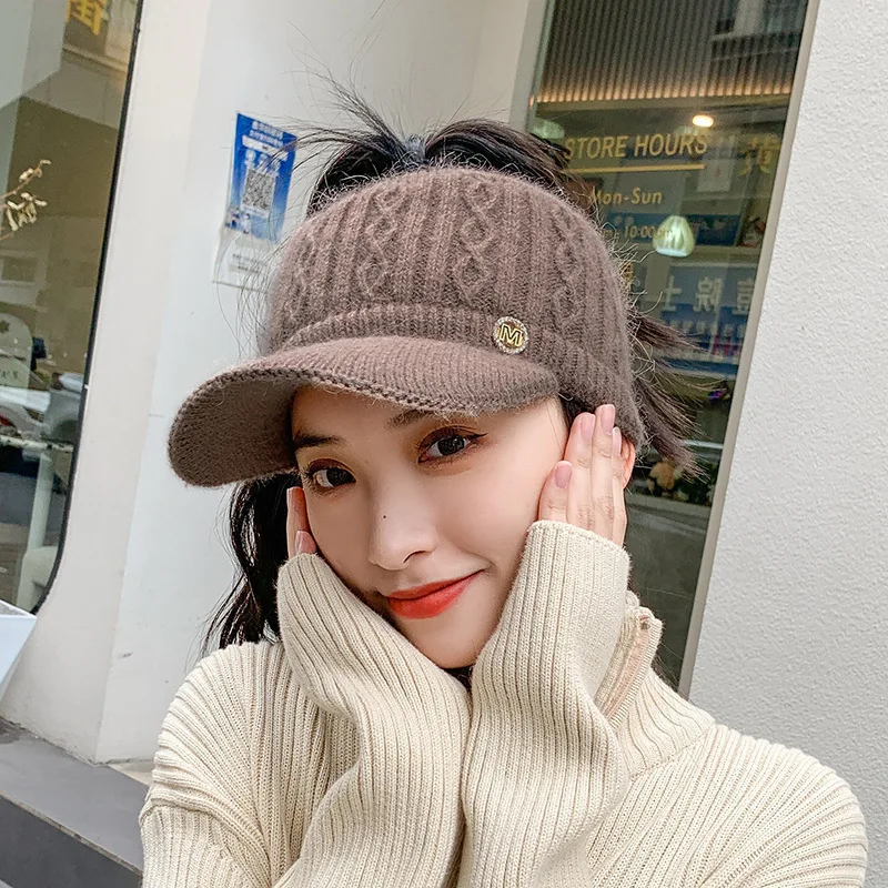 Women's autumn and winter empty top hat knitted rabbit fur and plush thickened warm ear protection duck tongue baseball cap