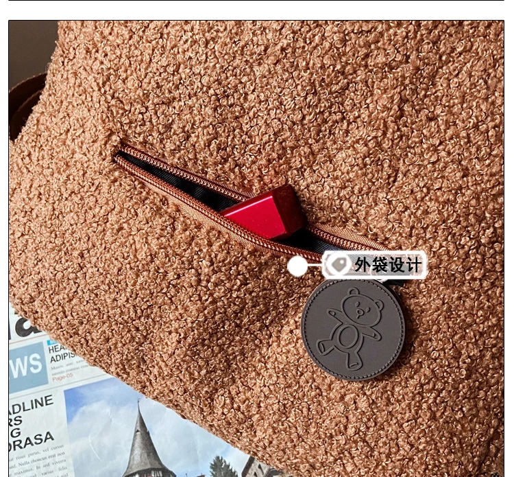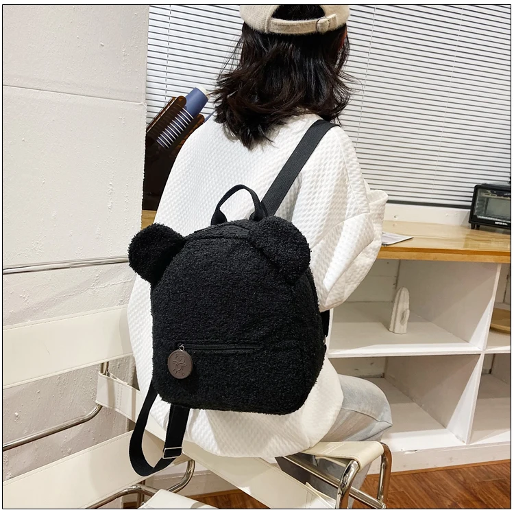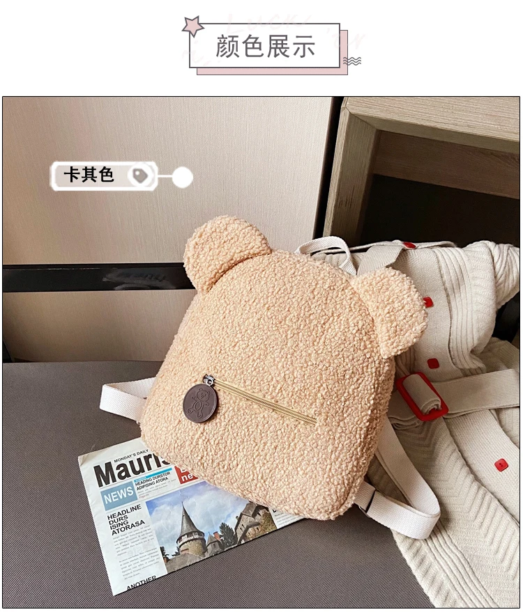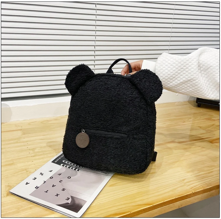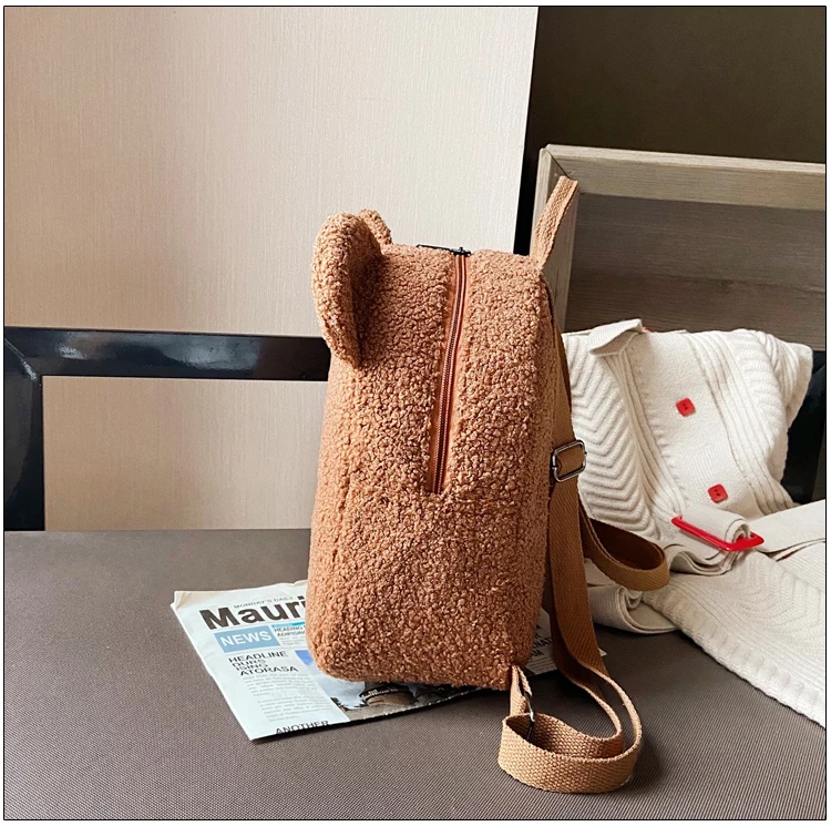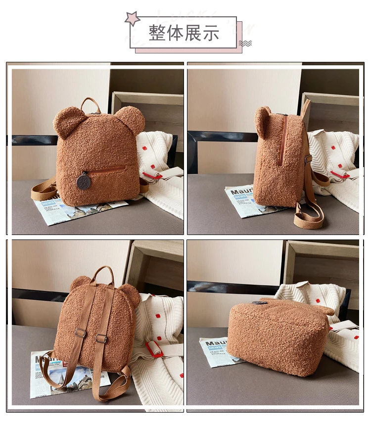 Casual Fleece Bear Shaped Shoulder Bag Cute Women Backpack Handbag Children School Bag Travel Rucksack