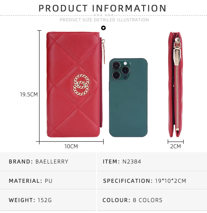 Women's Long Wallet Pu Leather Multi Slots Card Holder Large Capacity Zipper Coin Purse Phone Clutch Red White Wallets for Women
