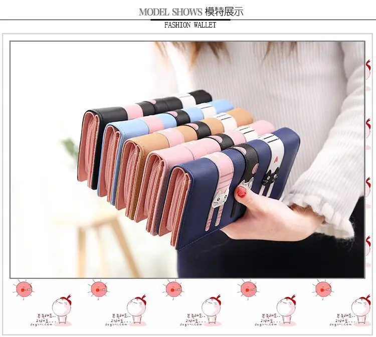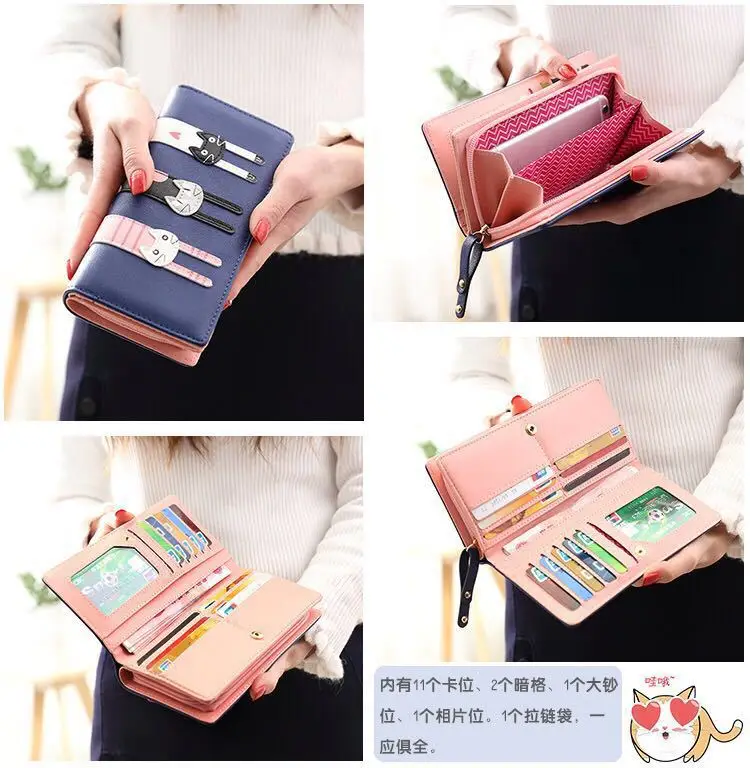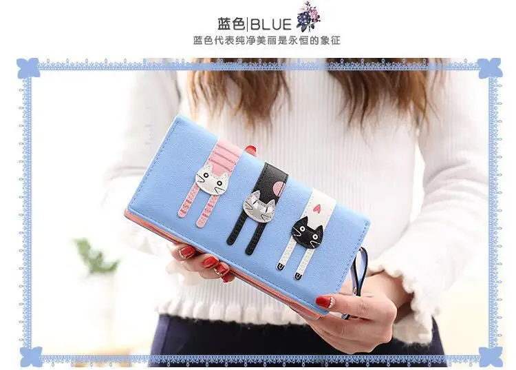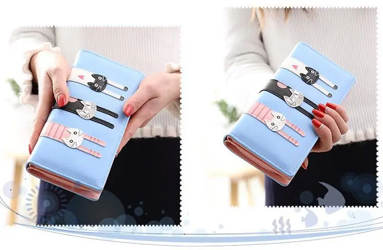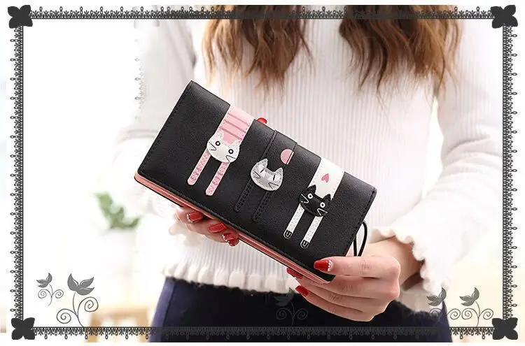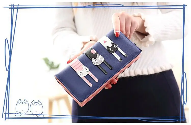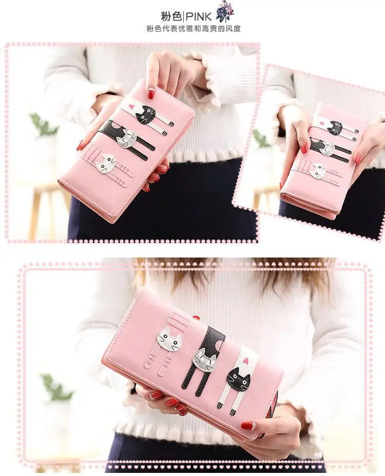 Women's Wallet Wear-resistant PU Leather Wallet Cute Cat Card Holder Mobile Phone Bag Long Clutch Coin Purse for Kids Girls