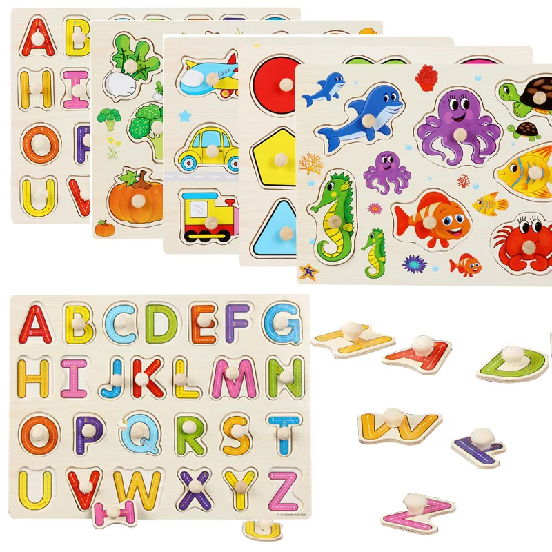 Wooden Toys Montessori Baby Puzzle Educational Toys For Children Learning Puzzles Board Games Wooden Puzzles For Kids 2 3 4 Year