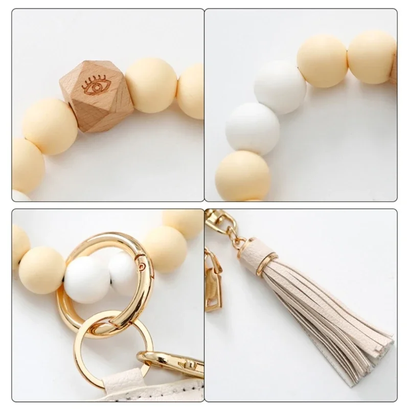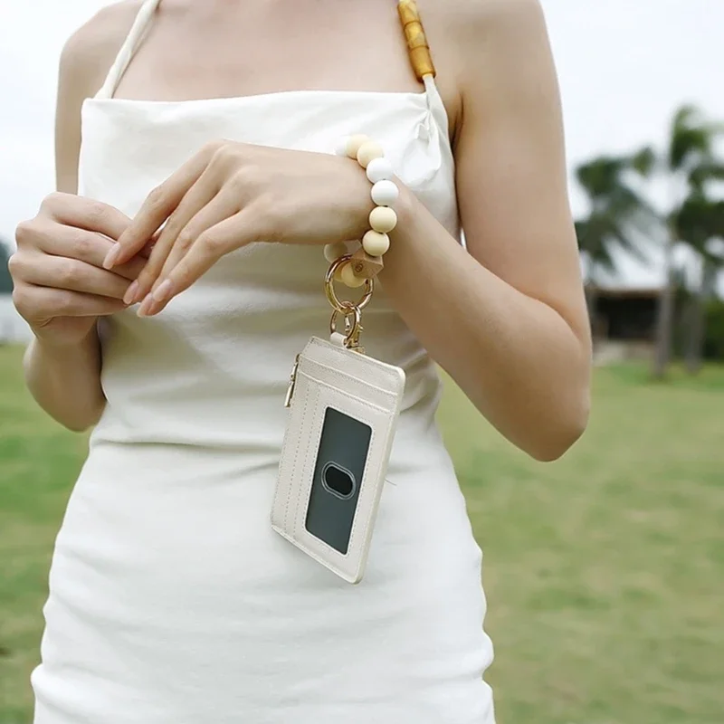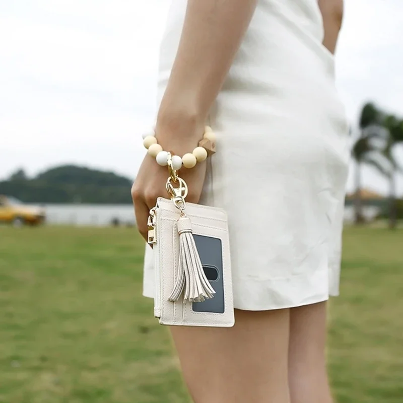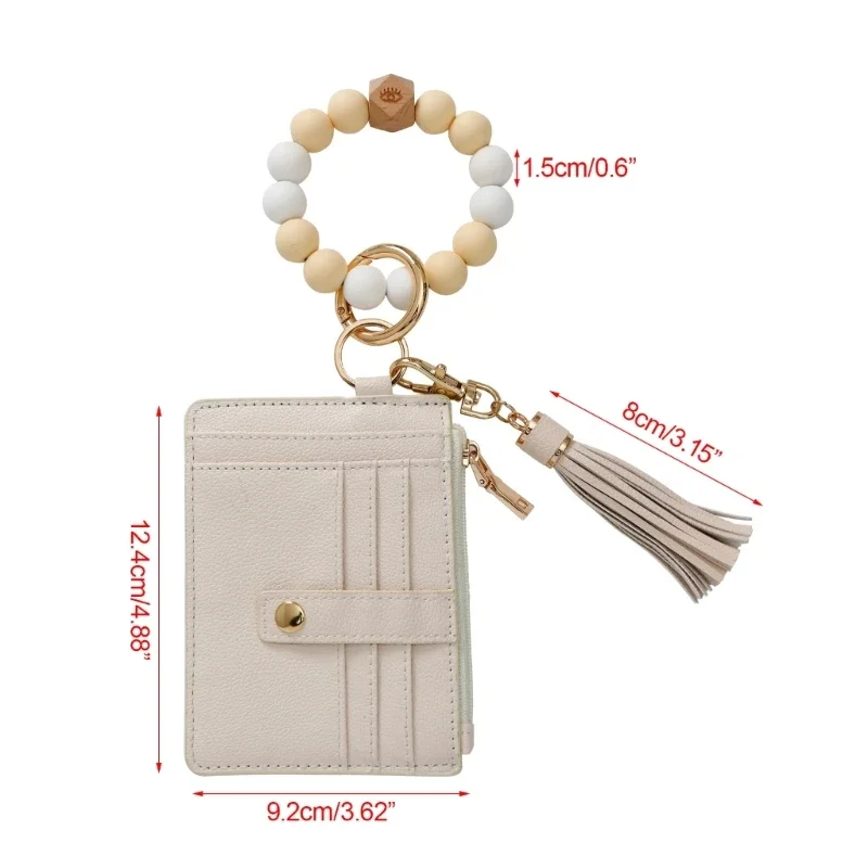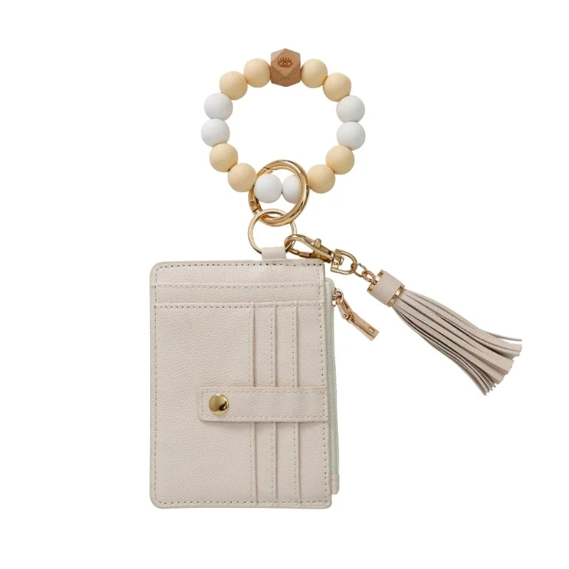 Wristlet Bracelet Keyring with Wallet for Women Silicone Beads Bracelet Key Chain Rings Card Holder Wallet Keychain