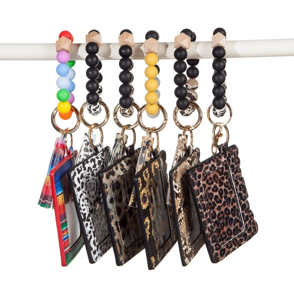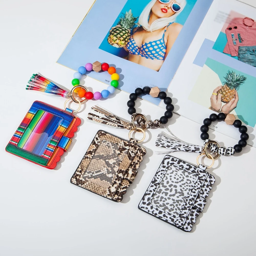 Wristlet Keychain Bracelet Wallet Luxury Tassel Bead Keyring Card Holder Purse Silicone Beaded Keychain Exquisite Tassel Keyring