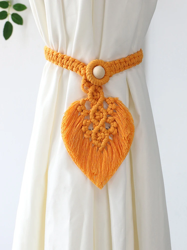 Yellow Hand Woven Macrame Curtain Tiebacks Decorative Curtain with Bead Kawaii Boho Room Decor Home Living Room Decoration Gift