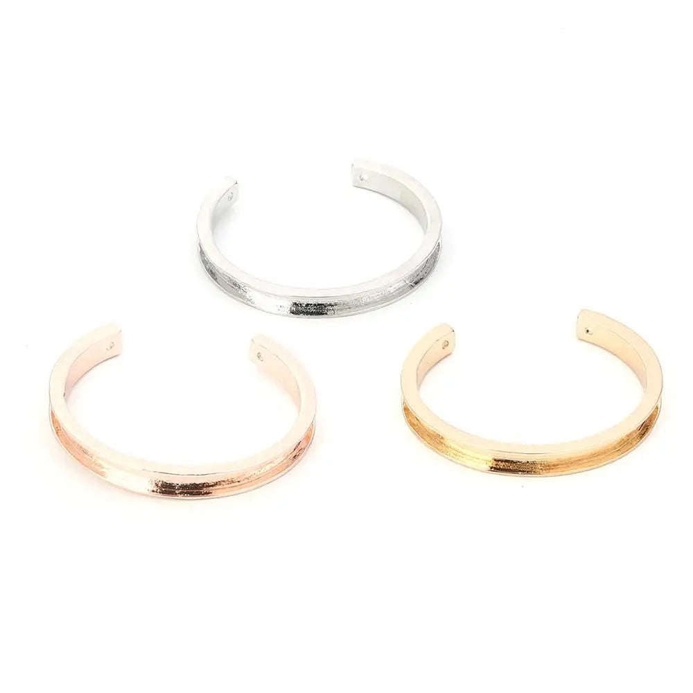 Zinc Alloy Open Cuff Bangles Metal DIY Fashion Bracelets Cabochon Settings (Fits 5.5mm/10mm) 17cm(6 6/8") long, 1 Piece