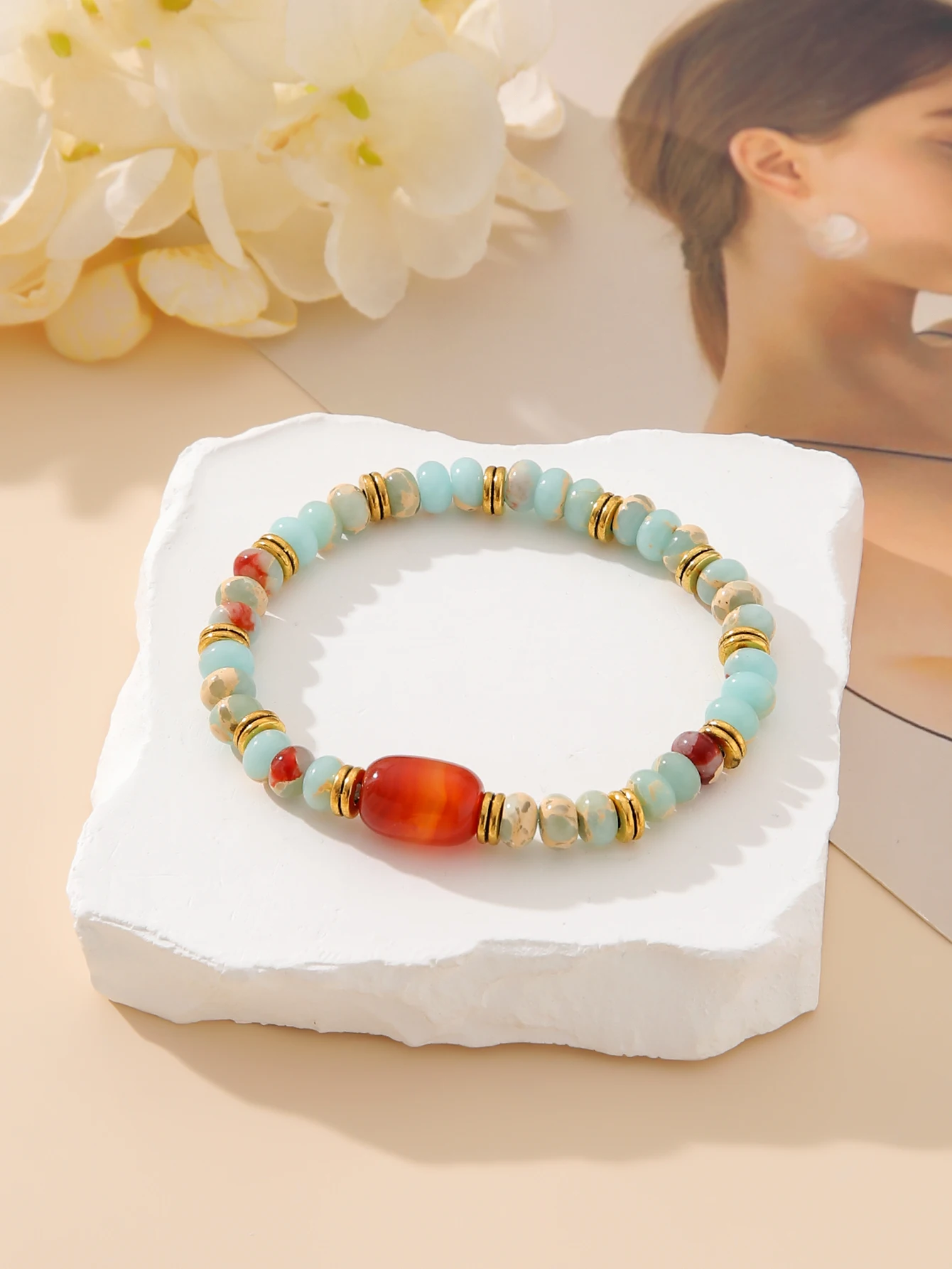 ZIRUISP Fashion Colorful Bracelet for Women Jewelry Natural Agate Shoushan Stone Beaded Bracelet for Women's Daily Wear